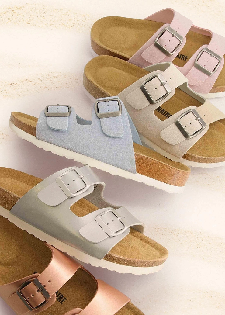 CUSHIONAIRE Lane Sandals offer double-buckle design, suede footbed, and arch support for ultimate comfort.