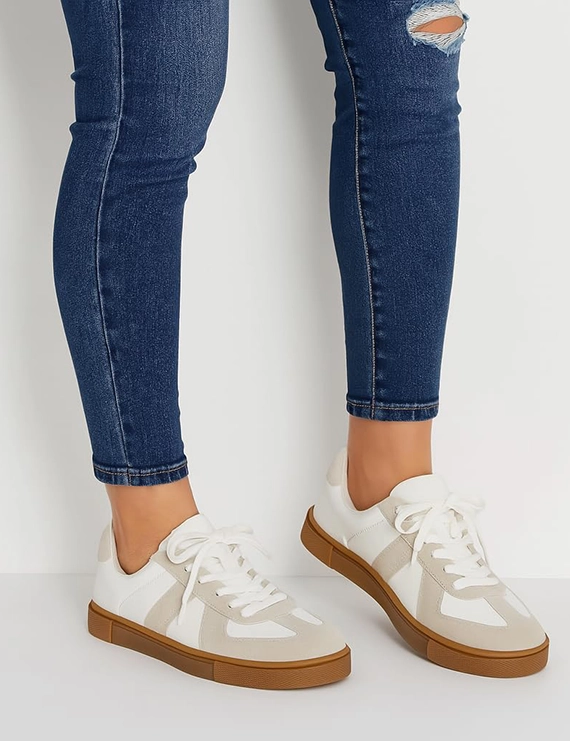 The CUSHIONAIRE Balance Women’s Sneakers combine memory foam cushioning and a slip-resistant outsole, offering all-day comfort and stability for active, casual wear.