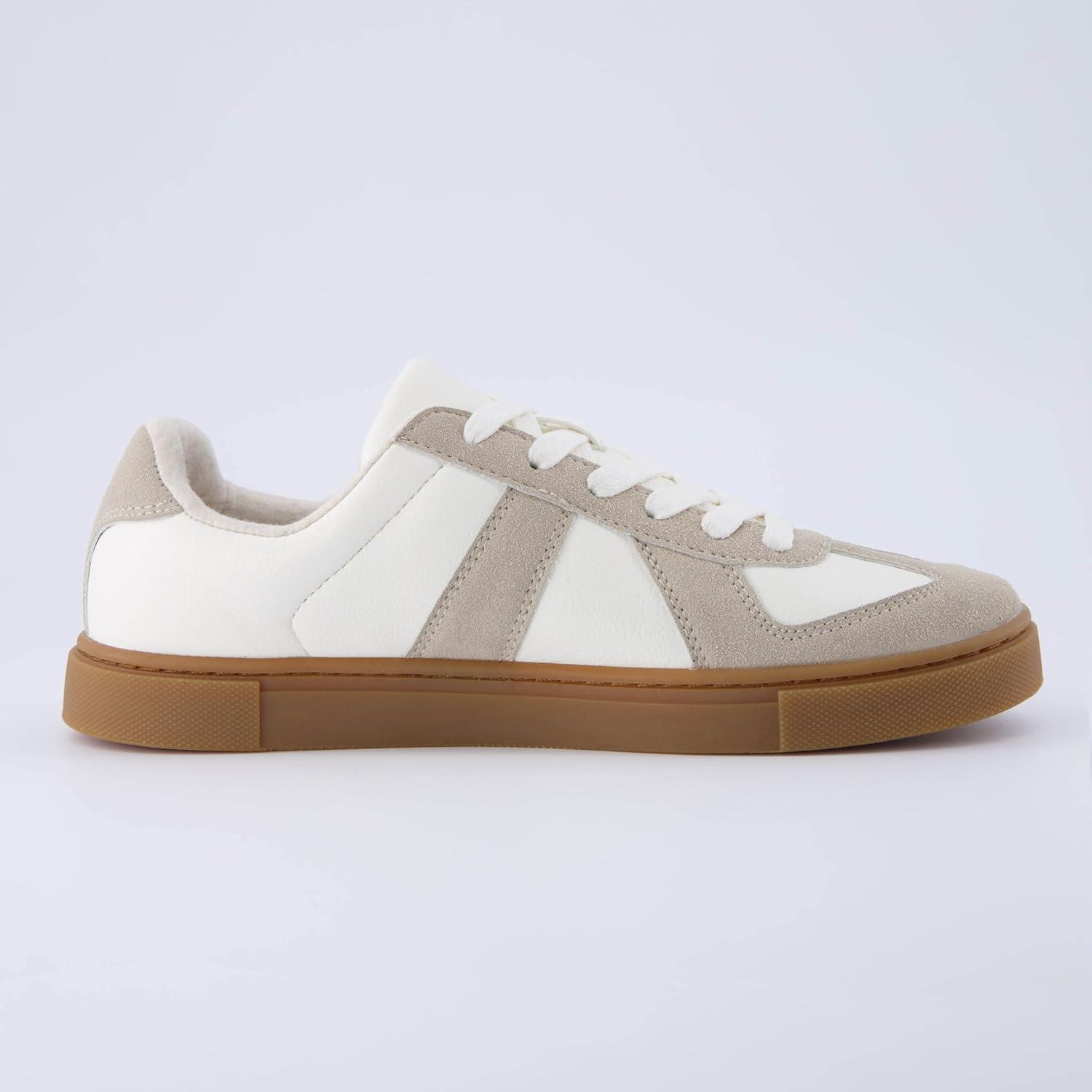 CUSHIONAIRE Bailey Womens Retro Sneaker -Classic Everyday Sneakers for Women with Sleek Rounded Toe and Memory Foam(White/Grey)