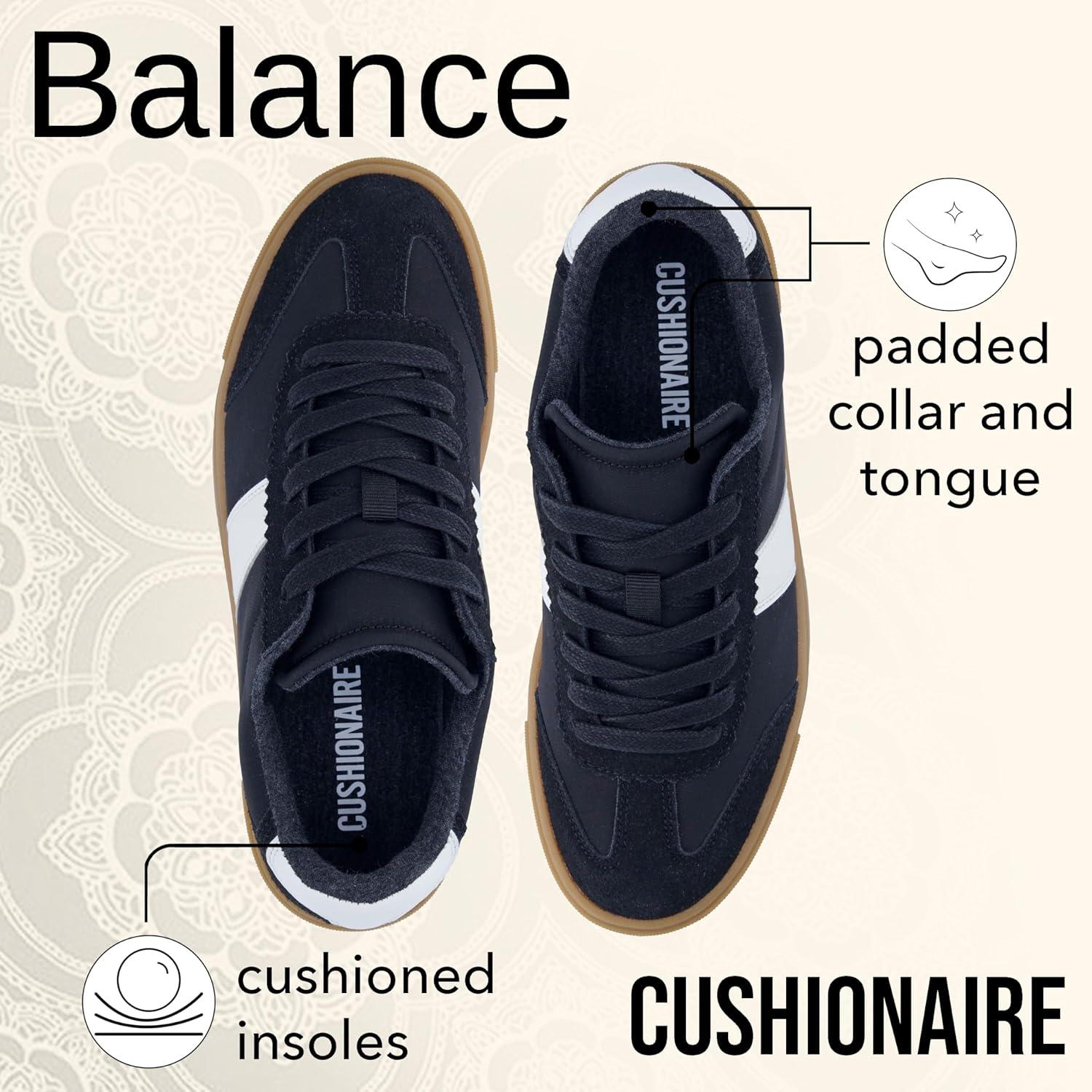 CUSHIONAIRE Balance Womens Sneakers, Casual Tennis Shoes for Women with Memory Foam and Slip Resistant Outsole(Black)