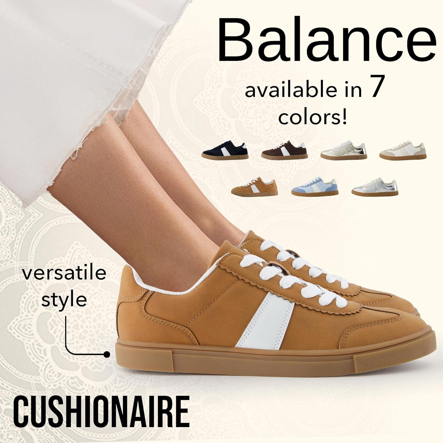 CUSHIONAIRE Balance Womens Sneakers, Casual Tennis Shoes for Women with Memory Foam and Slip Resistant Outsole(Tan)