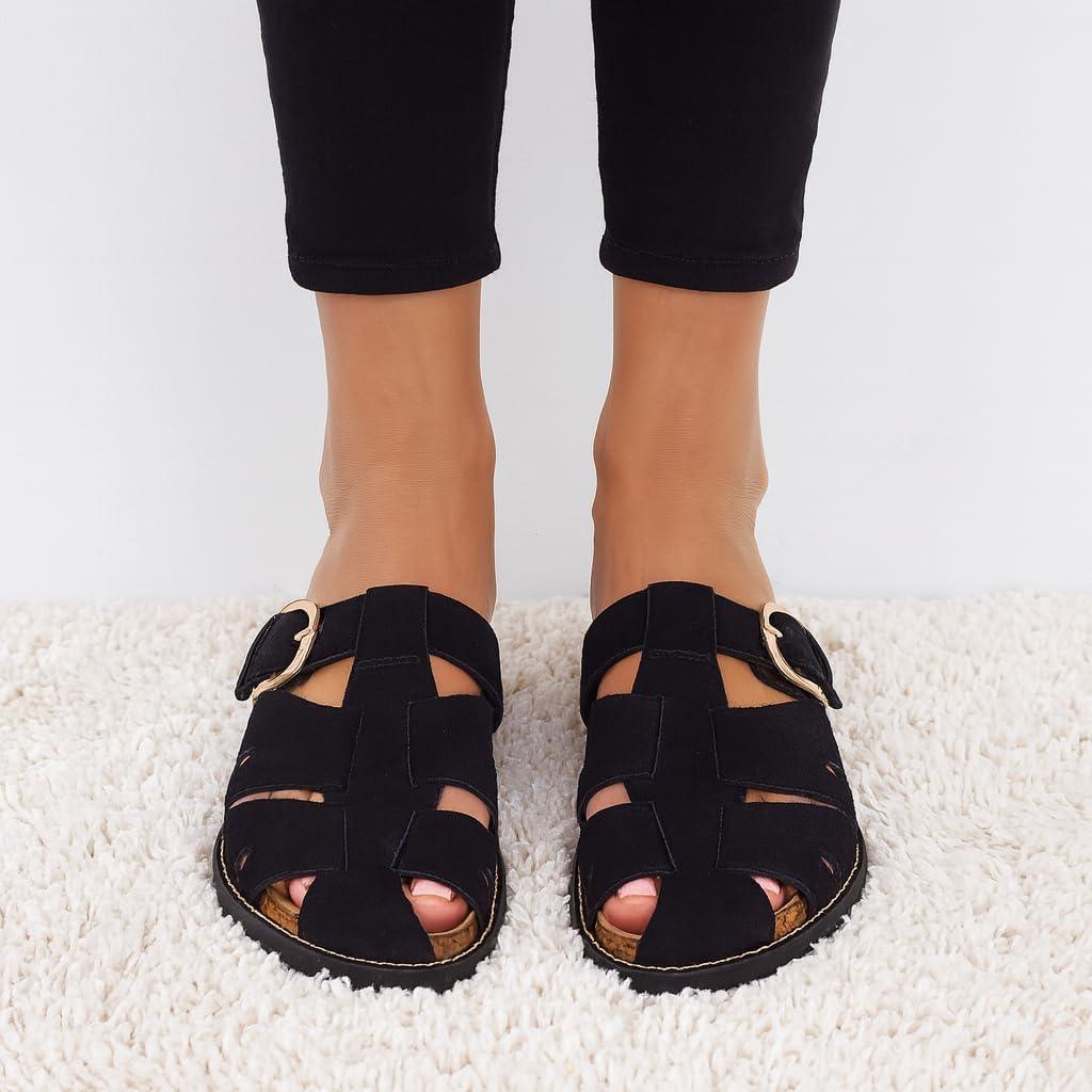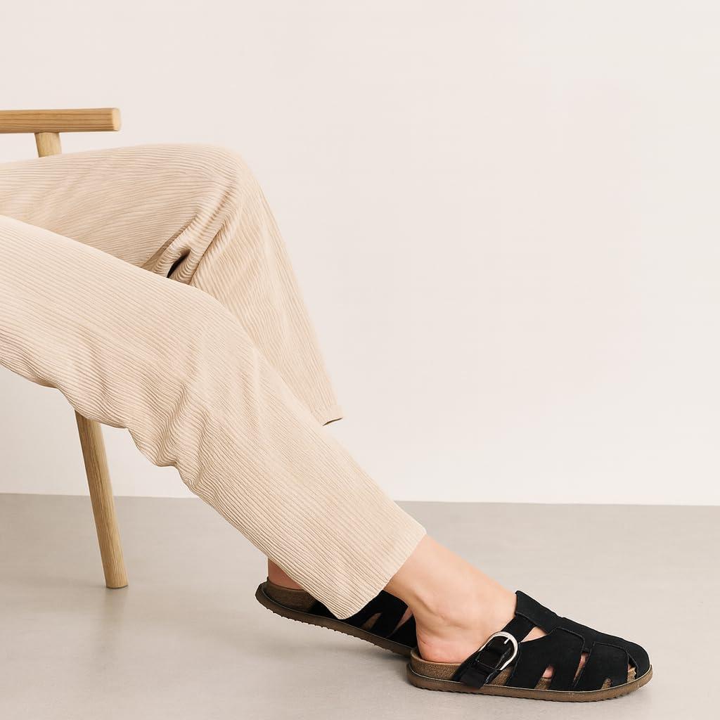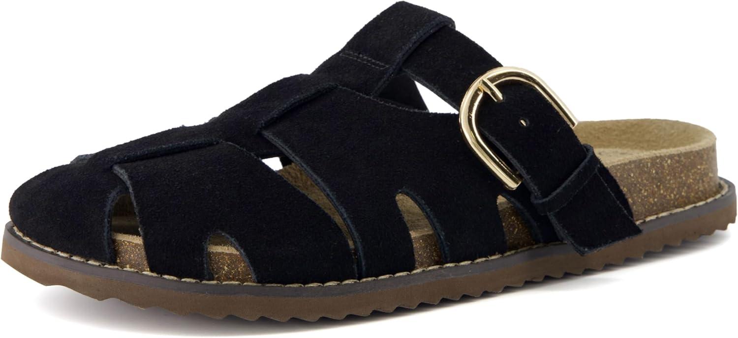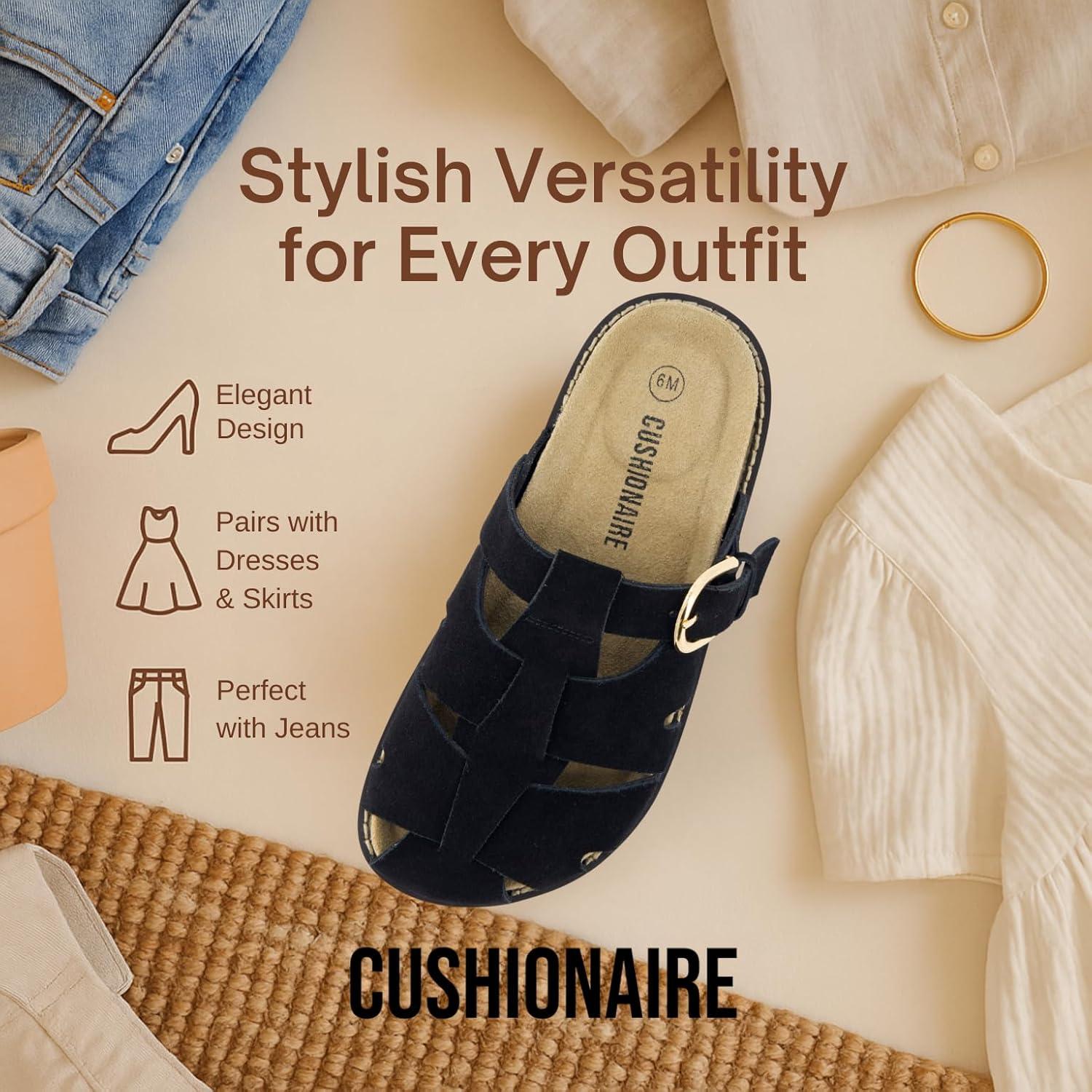 These CUSHIONAIRE Benson fisherman sandals for women, crafted for those who want breathable structure without sacrificing support. These suede sandals for women blend heritage design with modern performance, offering a closed toe sandals for women look that transitions effortlessly from day to night. As summer sandals for women 2025, they’re made for warmer days but built to last year-round. Designed for women who need both comfort and versatility, these womens sandals include features typically found in high-quality shoes for women, like supportive footbeds and soft, flexible uppers. The contoured cork footbed delivers the comfort similar to orthopedic sandals for women, providing gentle lift and stability for every stride. Thoughtfully styled as slip on sandals for women, they feature an adjustable buckle and open-weave design for a personalized fit that doesn’t compromise on security. Bringing the best of classic silhouettes and updated comfort, these clog sandals for women channel the charm of retro clogs for women in a breathable, woven suede finish. Whether you're reaching for black sandals women or other earthy hues like Taupe or Chestnut, they’ll pair effortlessly with your seasonal wardrobe. Performance-driven features include lightweight soles and built-in support, making them excellent sandals with arch support for all-day wear. With a supportive base and ease of movement, they double as dependable women's walking sandals. Their casual profile also aligns with the comfort and ease of flat sandals for women, ideal for warm weather adventures. Finished with materials seen in top-tier womens cork sandals, and shaped to feel like your favorite supportive sandals for women, these are designed with real motion in mind. Slip into the secure structure of ladies sandals closed toe, and enjoy the stylish charm of cute sandals for women made to move. These fashion-forward womens clogs combine everything you want in a sandal—style, structure, and serious comfort.