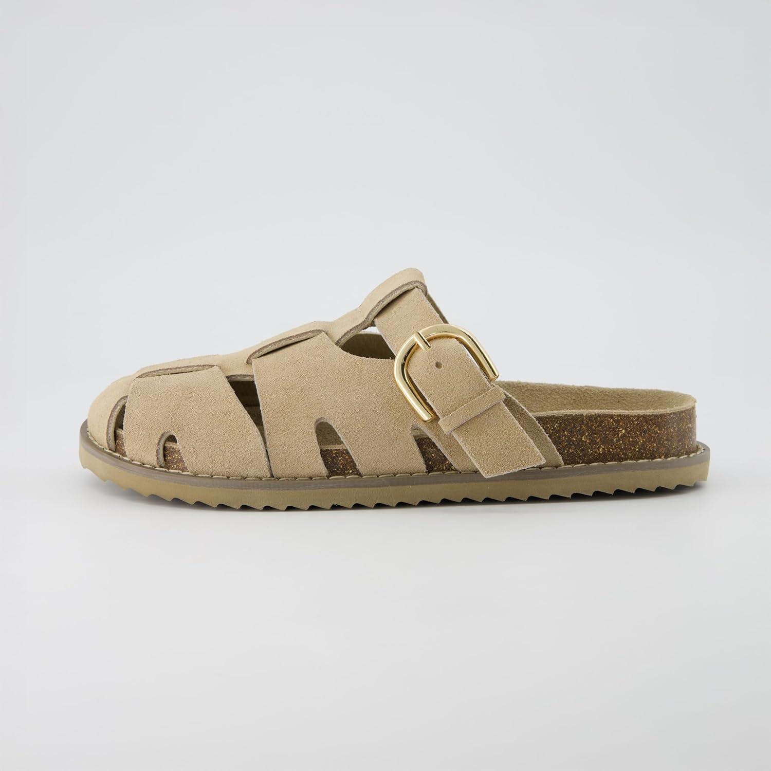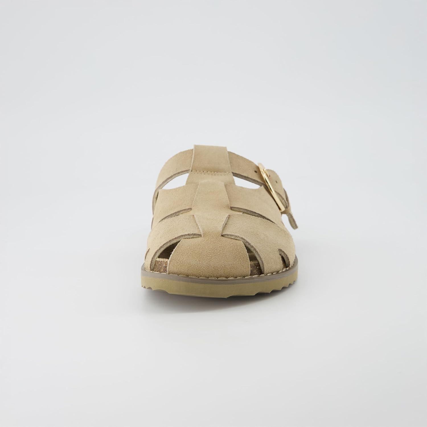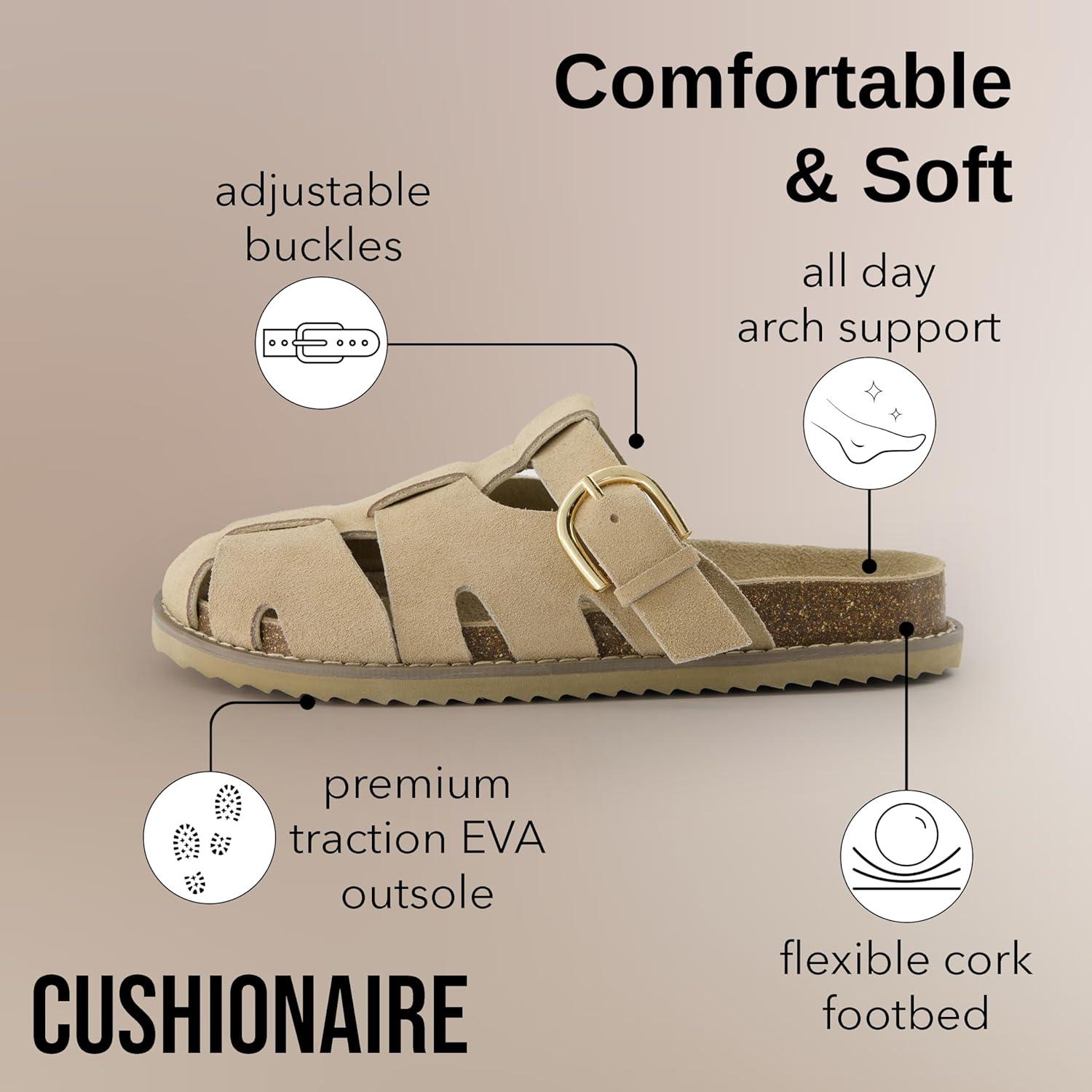 CUSHIONAIRE Benson Women’s Fisherman Clog – Suede Slip-On Sandal with Adjustable Buckle & Contoured Cork Footbed(Biscuit Suede)