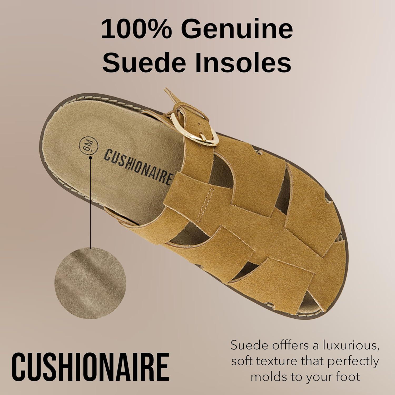 CUSHIONAIRE Benson Women’s Fisherman Clog – Suede Slip-On Sandal with Adjustable Buckle & Contoured Cork Footbed(Taupe Suede)