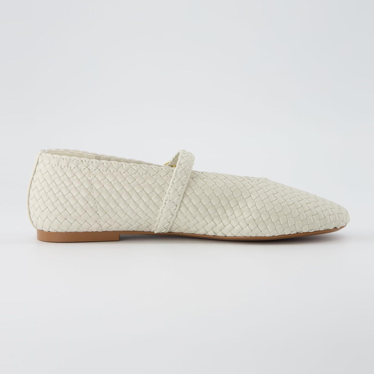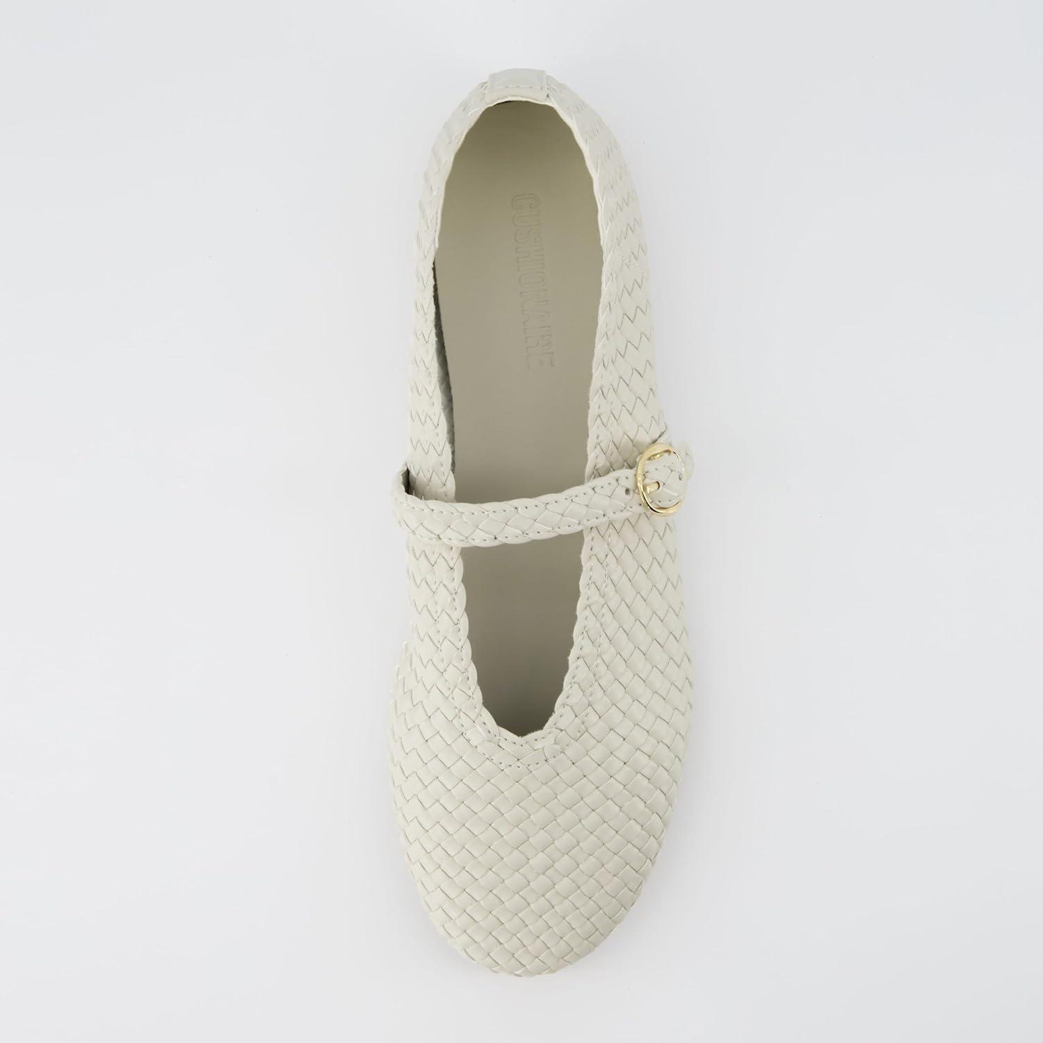 CUSHIONAIRE Bistro Mary Jane Flats for Women, Woven Ballet Flats Shoes with Strap and Memory Foam for All-Day Comfort(Woven Wheat)