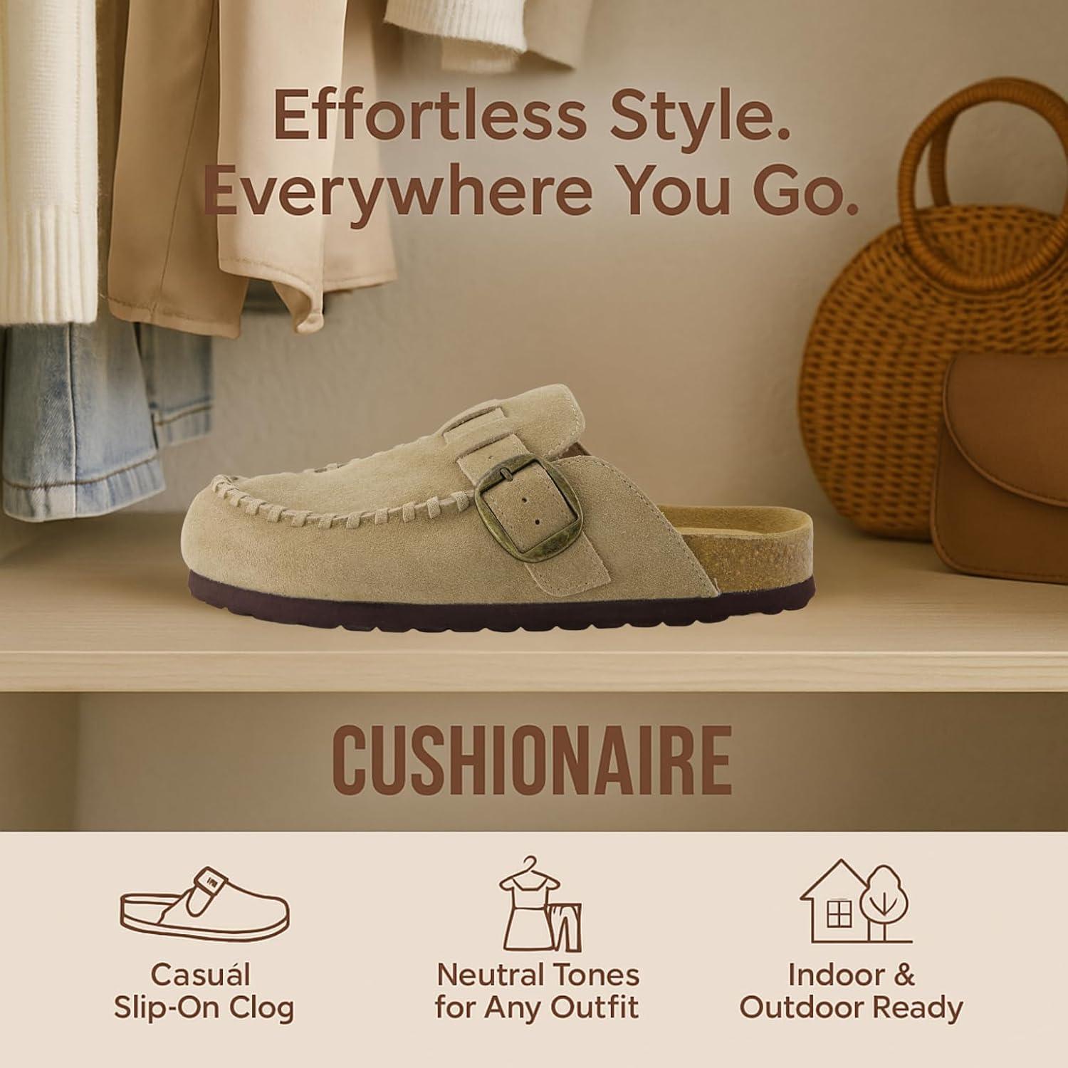 Don’t miss out on our limited-time offer: buy CUSHIONAIRE Canoe Genuine Suede Clogs for Women Footwear with Moc Toe Design – Casual Slip On Womens Shoes(Beige), get {accessory} 50% off!