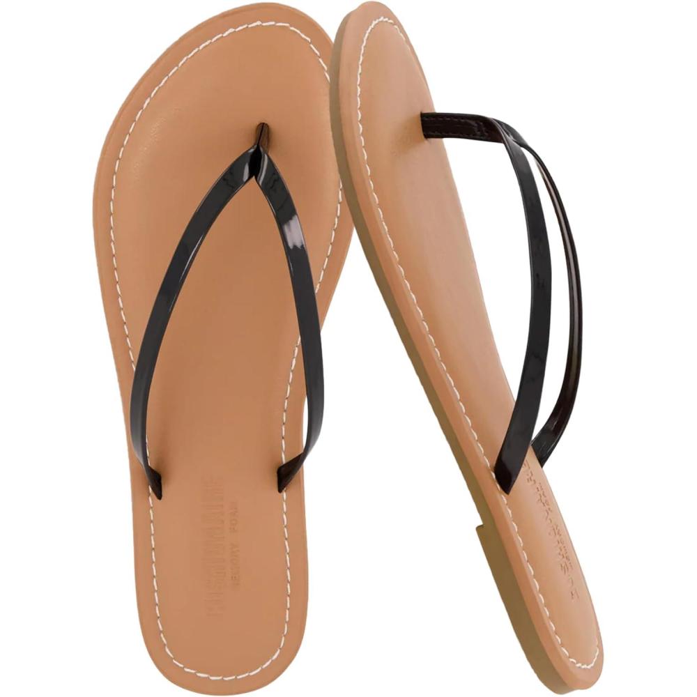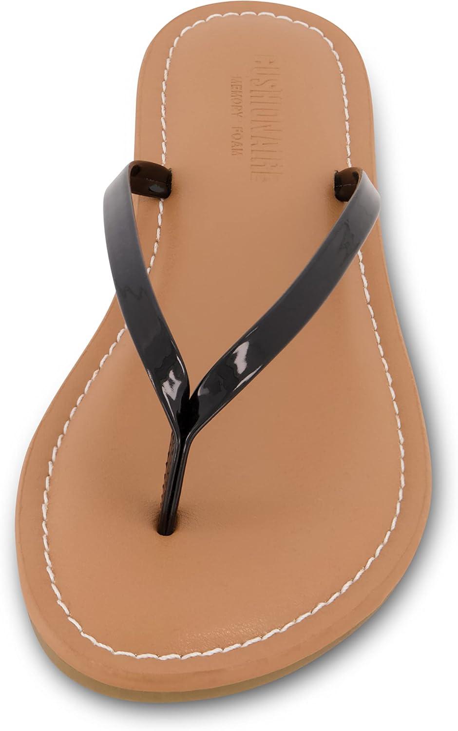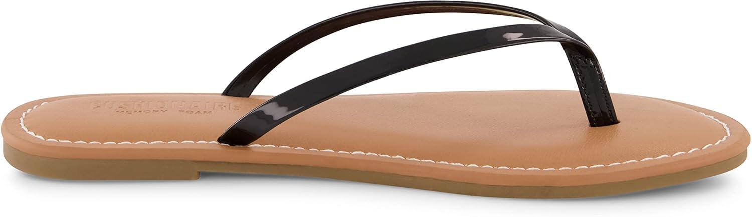 CUSHIONAIRE Cora Flip Flops for Women | Vacation Beach Essentials | Casual Women Footwear Sandals with Wide Widths Available(Black Patent)