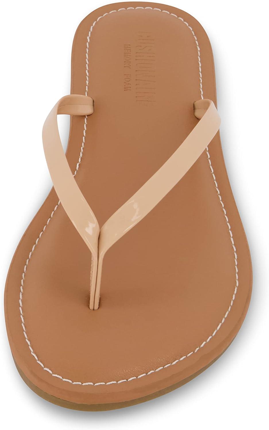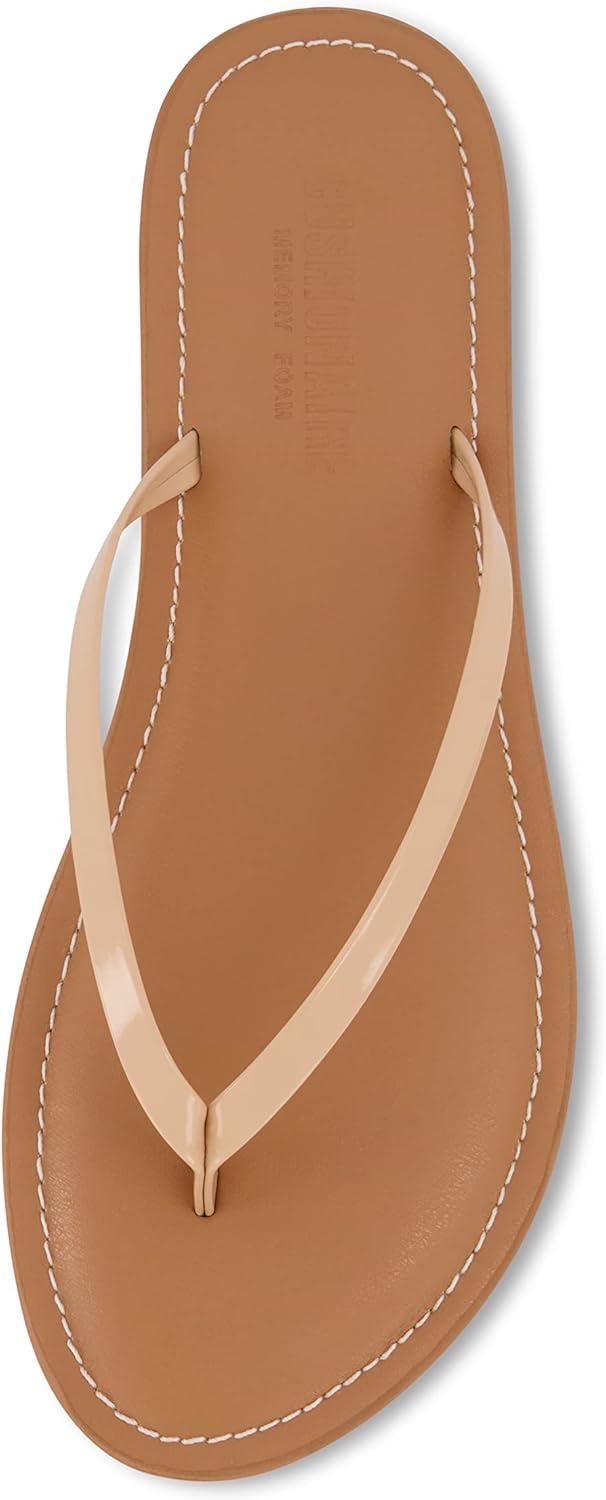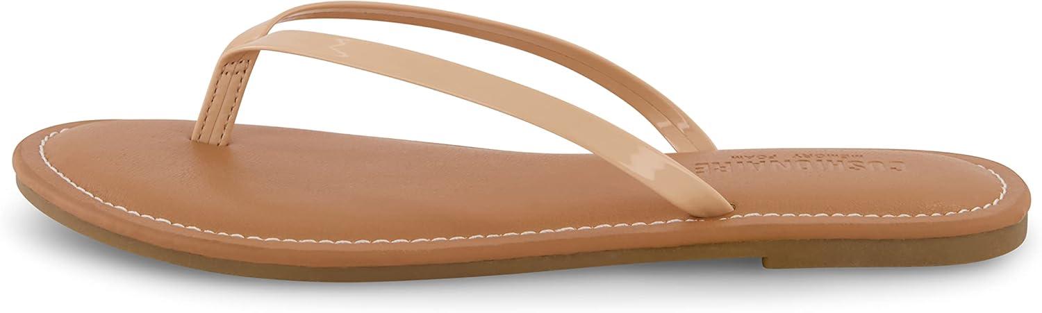 CUSHIONAIRE Cora Flip Flops for Women | Vacation Beach Essentials | Casual Women Footwear Sandals with Wide Widths Available(Nude Patent)