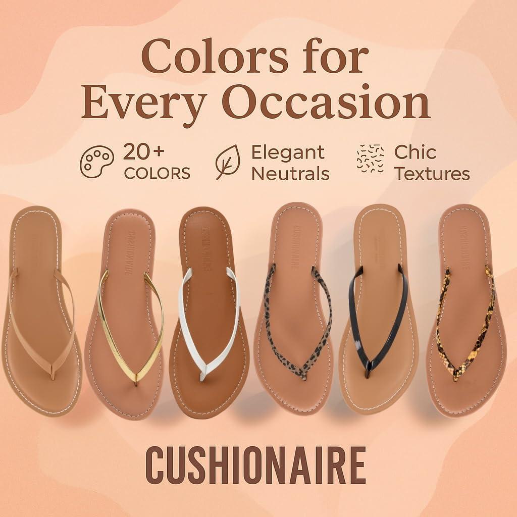 CUSHIONAIRE Cora Flip Flops for Women | Vacation Beach Essentials | Casual Women Footwear Sandals with Wide Widths Available(Tan)