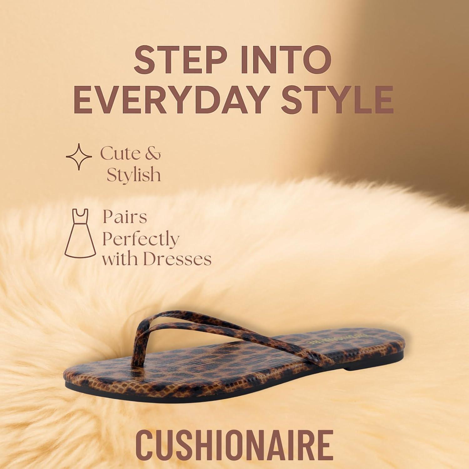 CUSHIONAIRE Cruise Flip Flops for Women Footwear | Vacation Beach Essentials | Casual Summer Sandals for Women with Wide Width(Leopard Smooth)