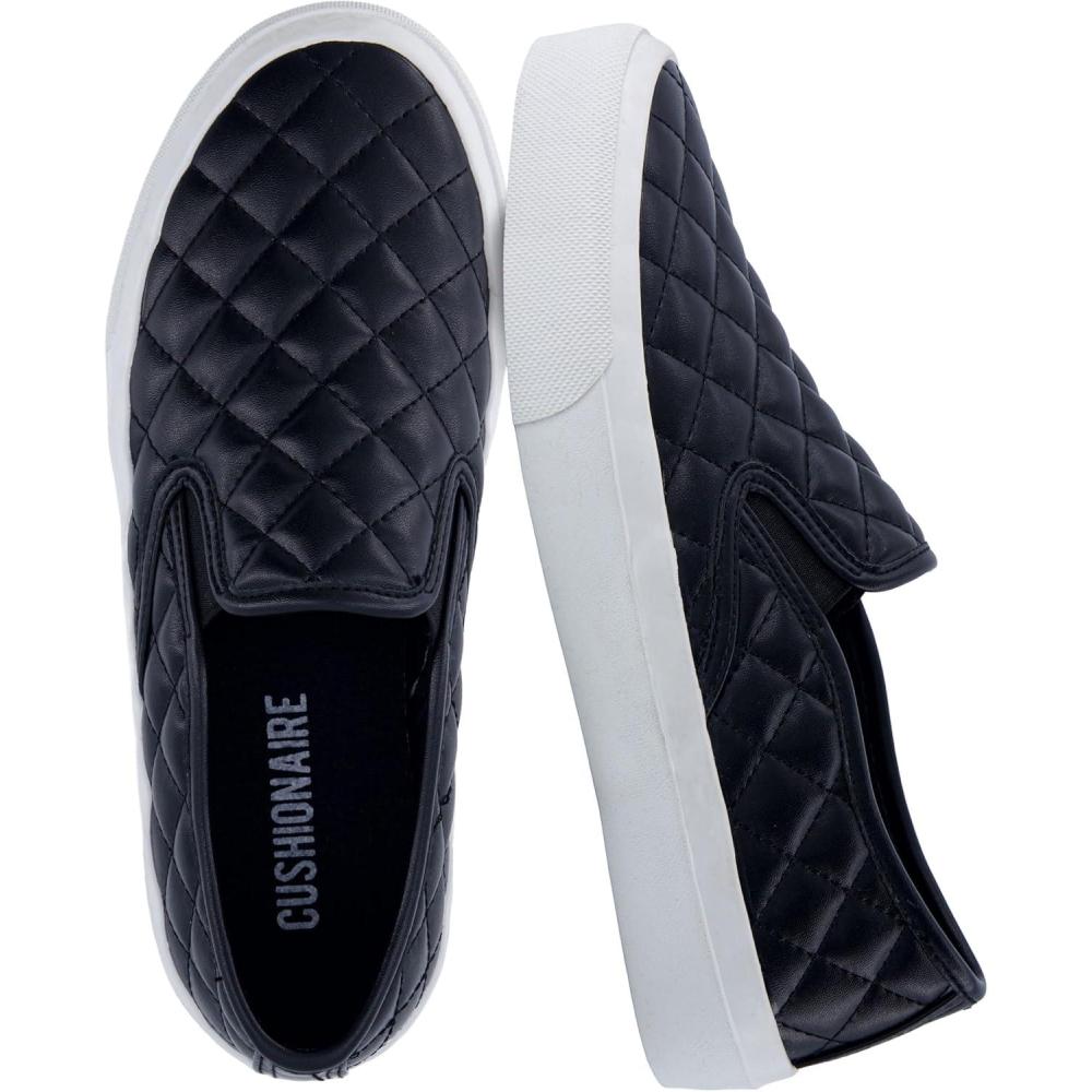 imageCUSHIONAIRE Faze Womens Quilted SlipOn Sneaker  Faux Leather Casual Shoe with Memory Foam Insole ampamp Rubber OutsoleBlack