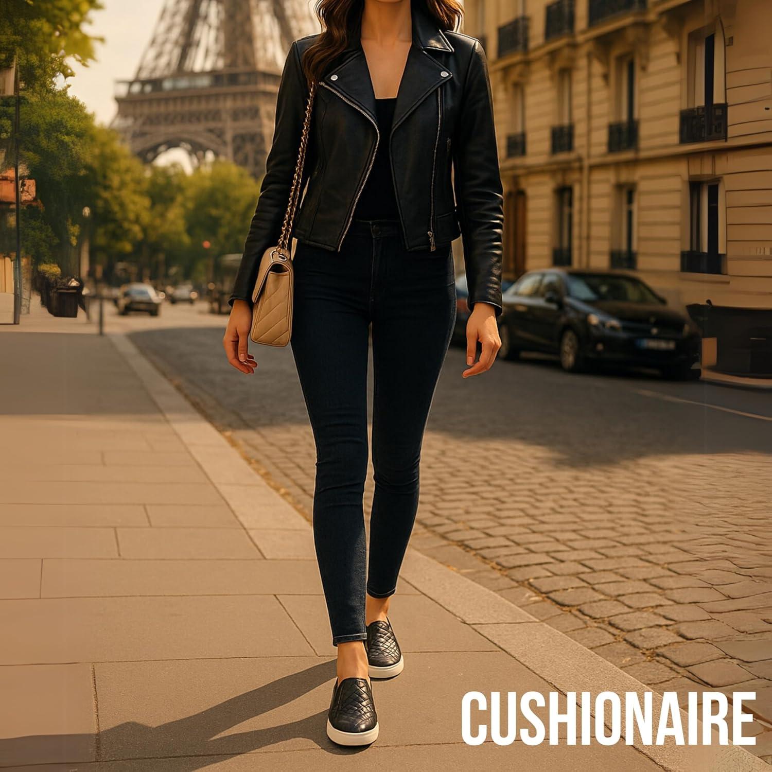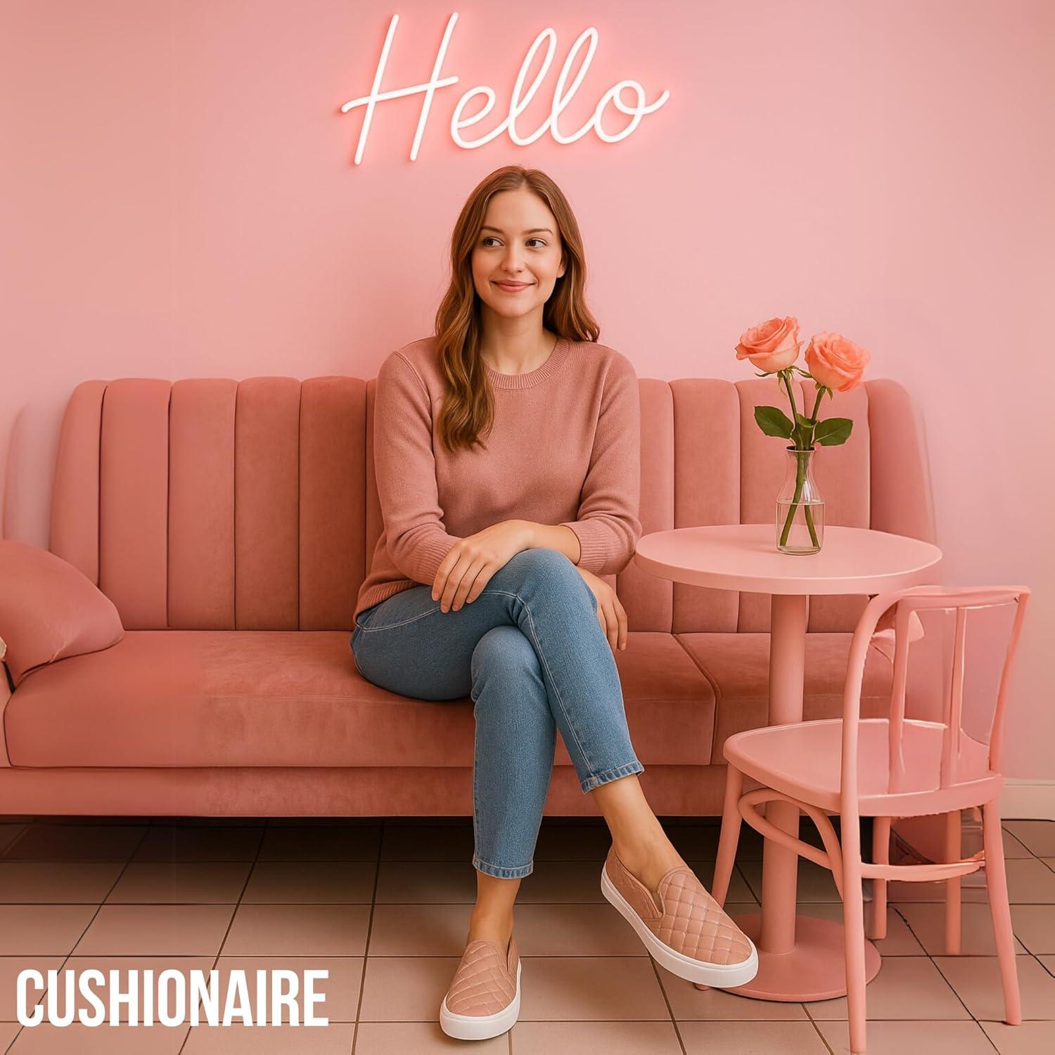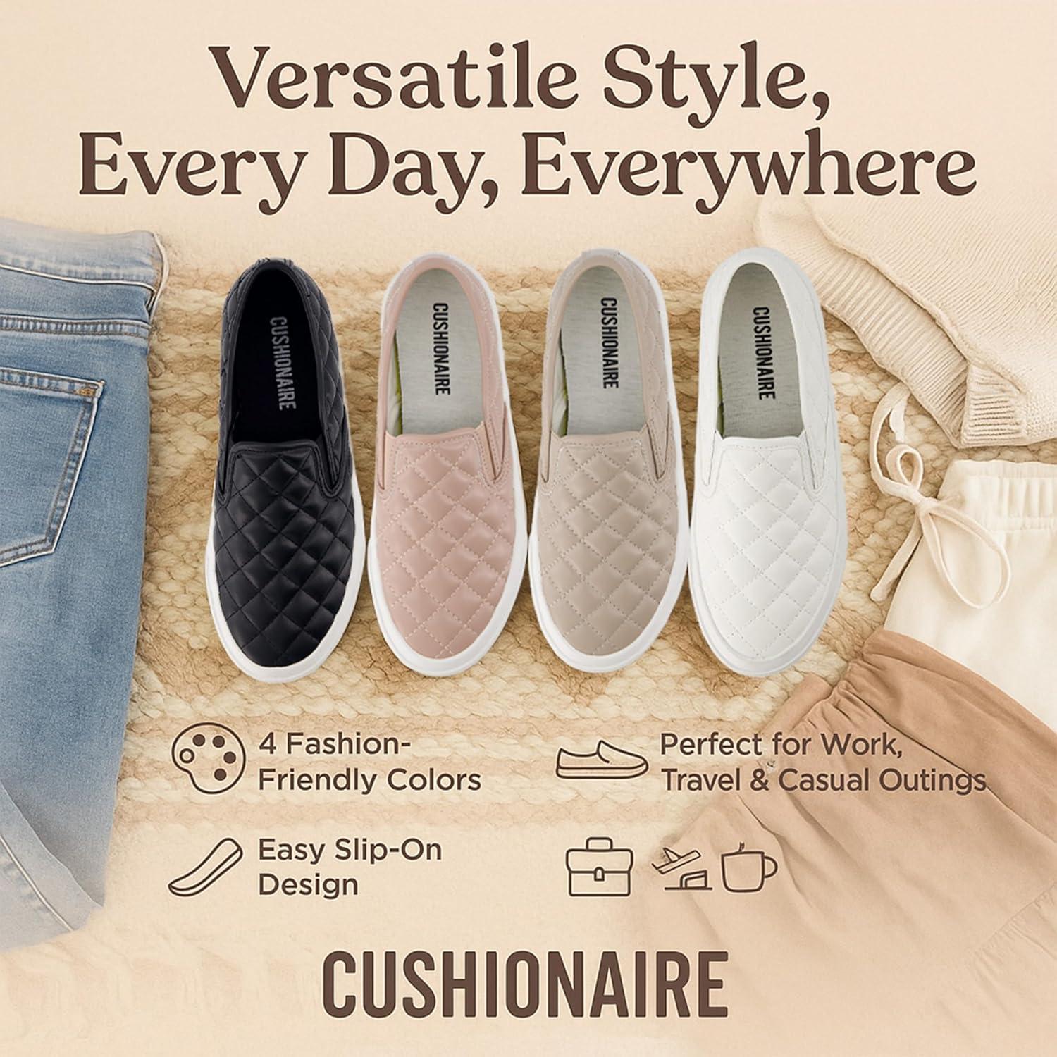 CUSHIONAIRE Faze Women’s Quilted Slip-On Sneaker – Faux Leather Casual Shoe with Memory Foam Insole & Rubber Outsole(Natural)