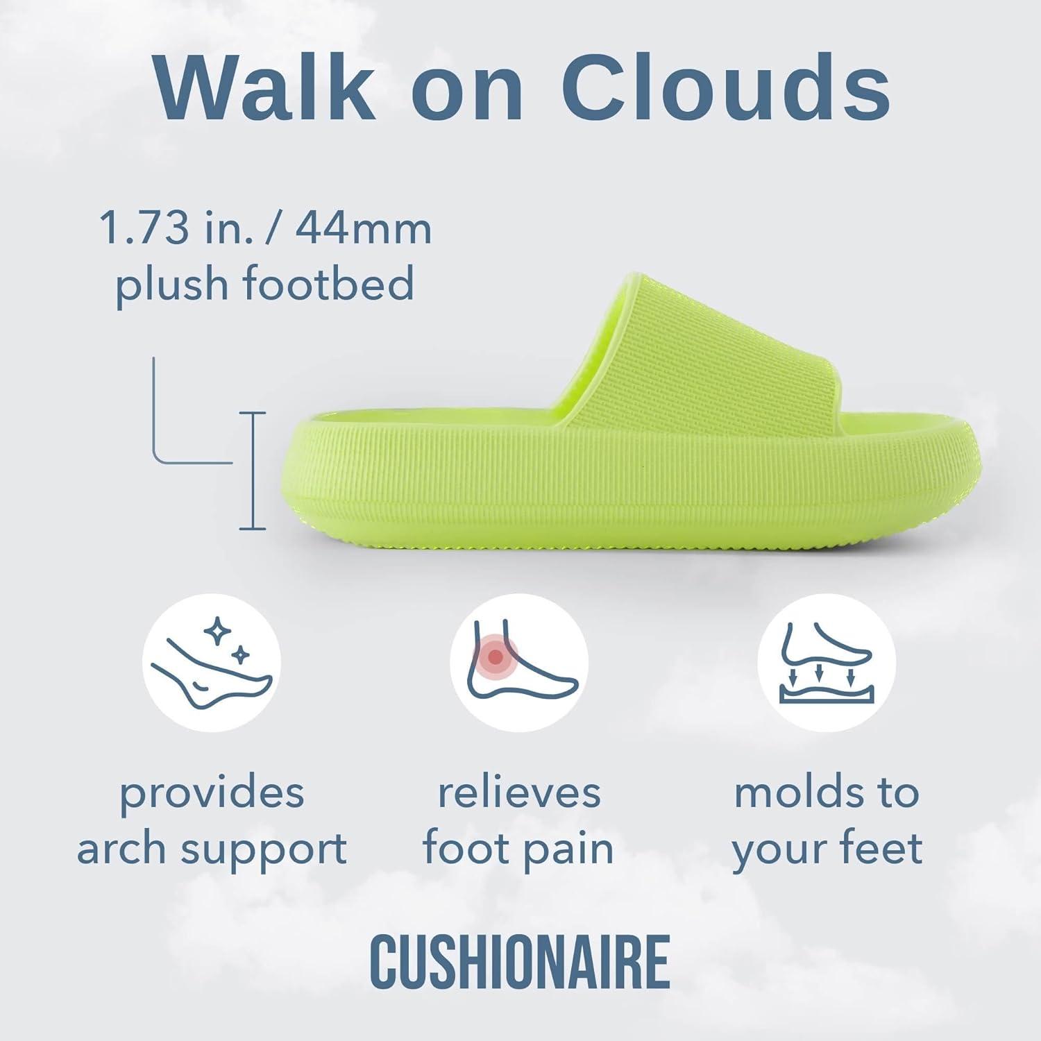 CUSHIONAIRE Feather EVA Slides for Women – Comfortable Slip On Womens Slippers, Indoor Outdoor Shower Shoes, Beach Essential Cloud Slides(Lemon Yellow)