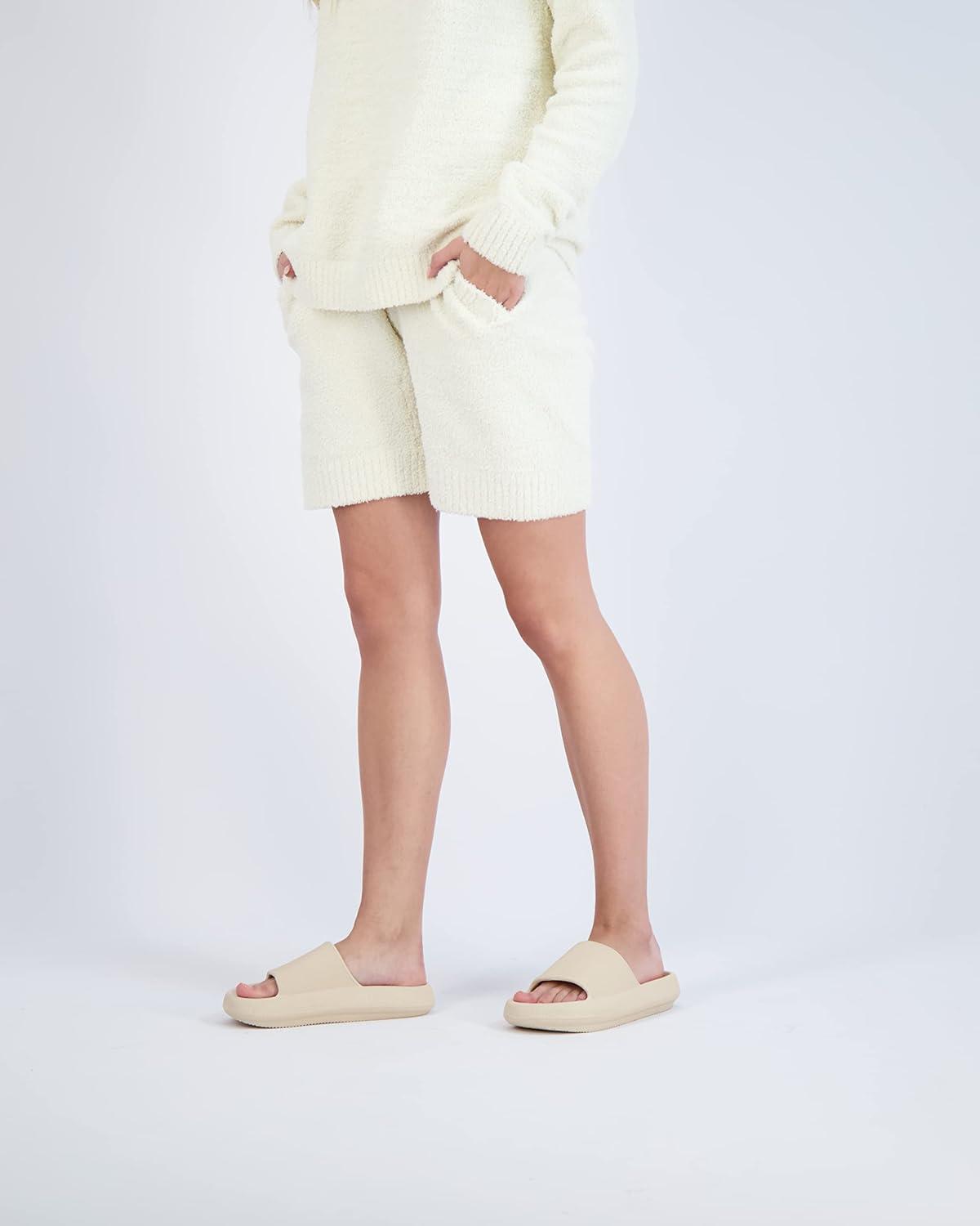 CUSHIONAIRE Feather EVA Slides for Women – Comfortable Slip On Womens Slippers, Indoor Outdoor Shower Shoes, Beach Essential Cloud Slides(Lemon Yellow)