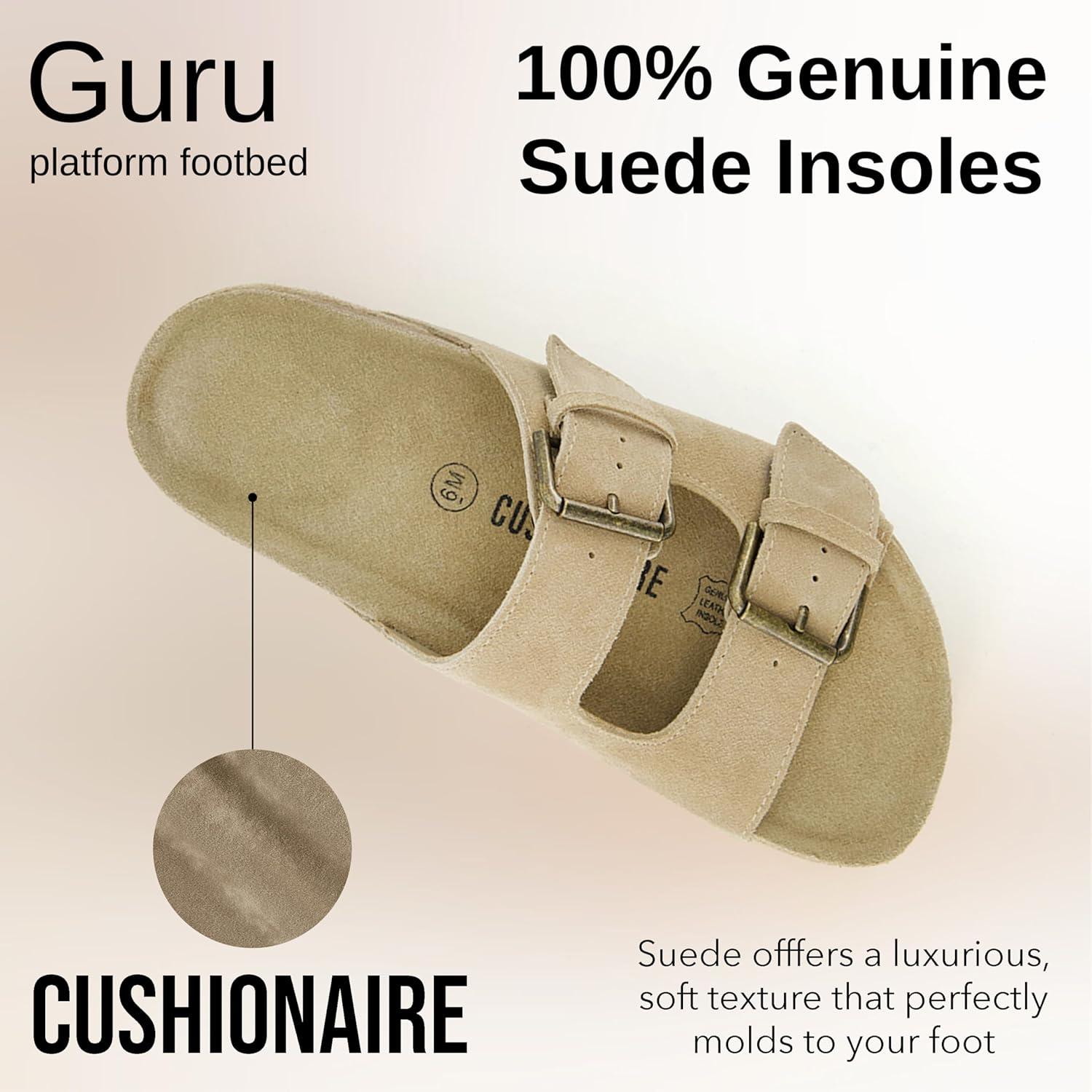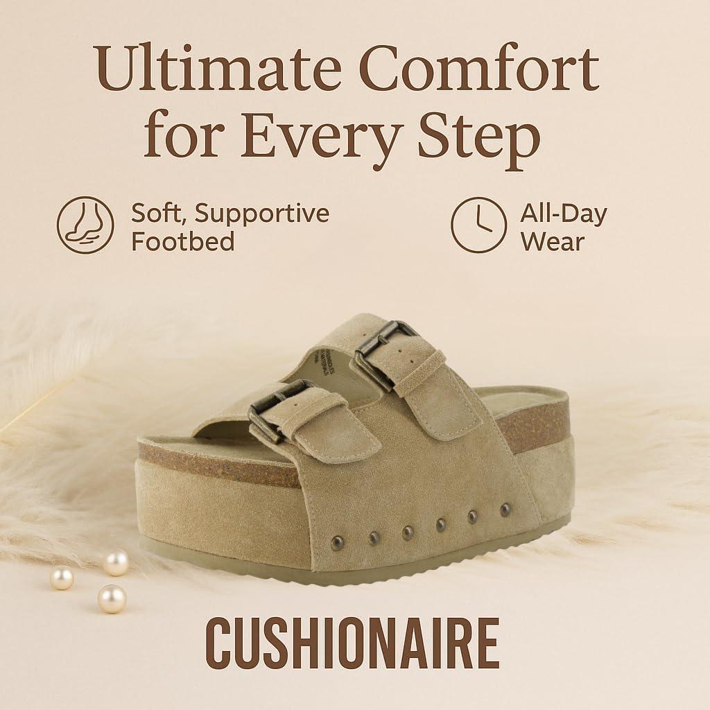 imageCUSHIONAIRE Guru Platform Sandals Women Footwear  Comfortable Genuine Leather Footbed Studded Chunky Slide Summer Sandals for Women 2025Suede Khaki