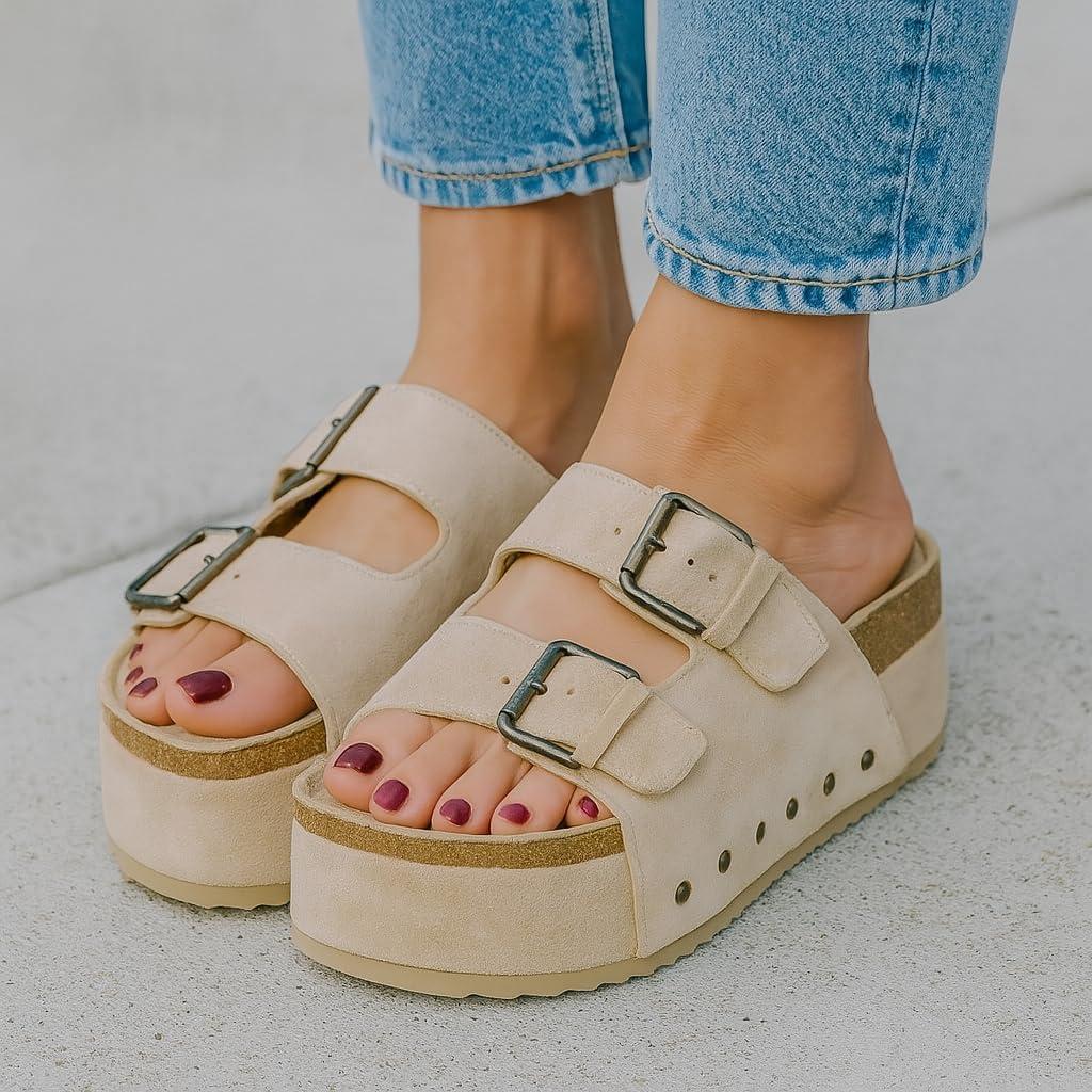 Step into standout style with the CUSHIONAIRE Women's Guru Platform Sandals. These womens platform sandals feature a genuine suede leather upper that not only adds a touch of luxury but also provides exceptional breathability and softness, ensuring a comfortable fit all day long. The bold black platform sandals design makes a striking statement, ideal for those who appreciate a little extra height without sacrificing stability. With their sturdy platform slides and edgy stud accents, these chunky sandals for women add a touch of confidence and flair to any outfit, making them a versatile choice for every wardrobe. Whether you're pairing them with a breezy summer dress, sleek jeans, or your favorite shorts, these sandals are designed to elevate your look in every setting. Perfect for brunch dates, beach outings, or casual strolls, these sandals effortlessly blend style and function. Elevate your look with these sandals for women 2025, ensuring you stay on-trend with every step. For those seeking fashionable yet supportive women footwear that doesn’t compromise on comfort or quality, these sandals are a must-have.