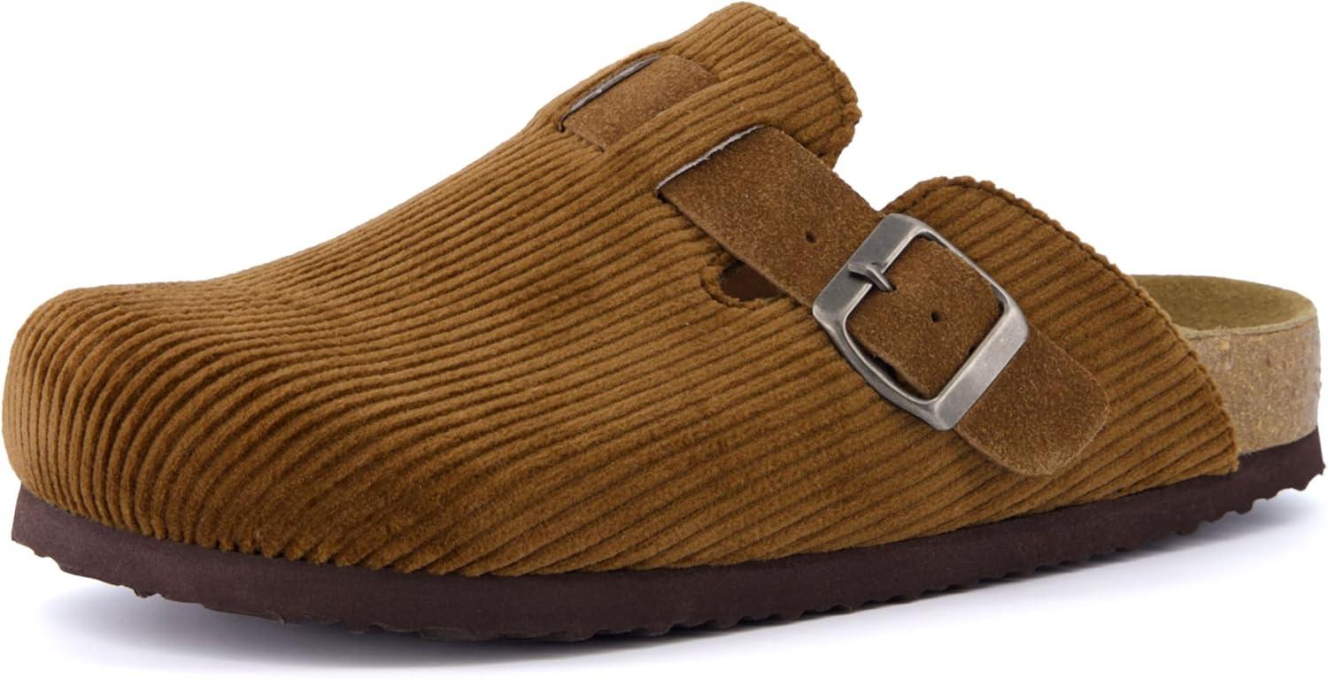 CUSHIONAIRE Hana Womens Clogs | Comfortable Vegan Suede Clogs for Women | Slip On Potato Shoes with Cork Footbed & Arch Support | Memory Foam, Wide Widths Available(Tan Corduroy)