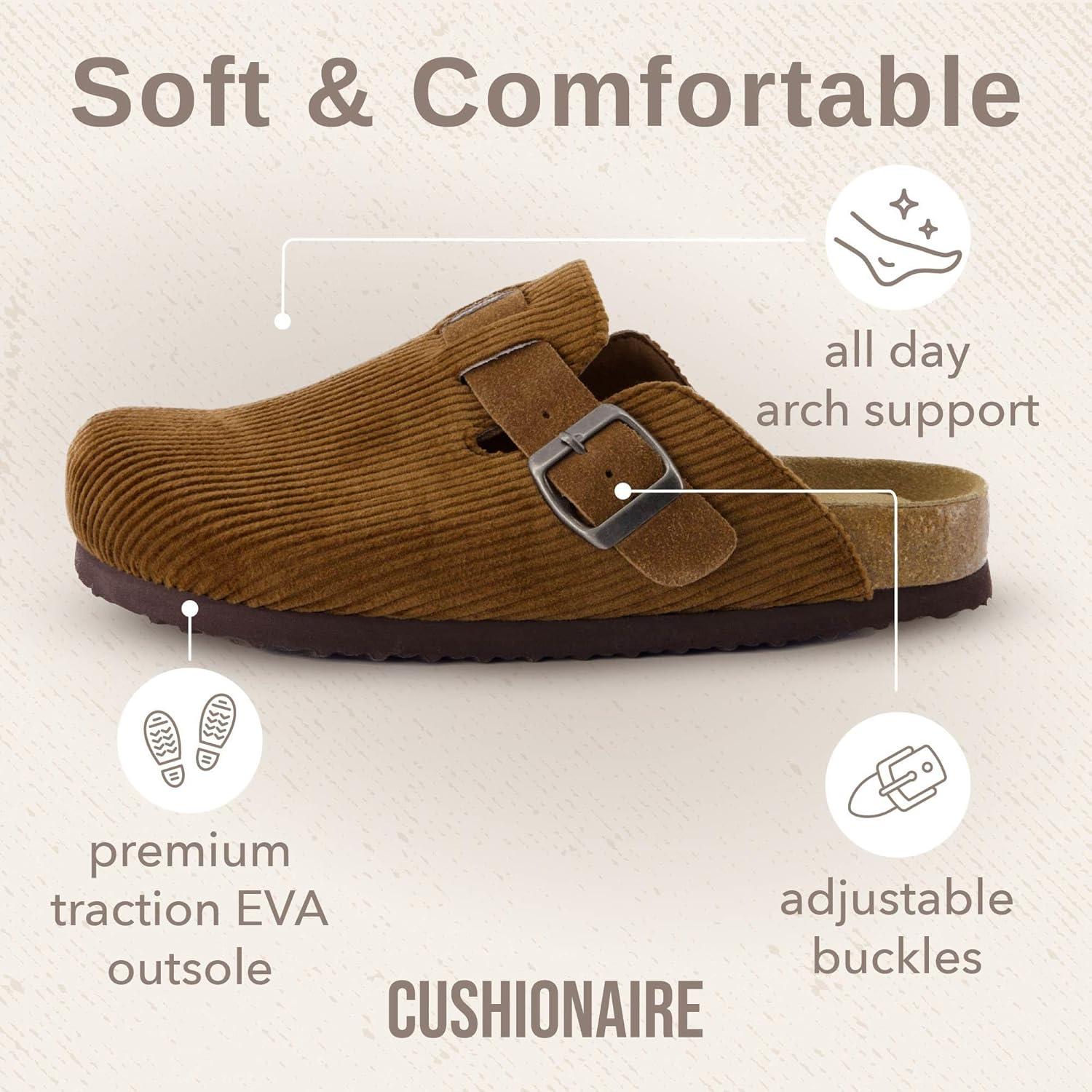 CUSHIONAIRE Hana Womens Clogs | Comfortable Vegan Suede Clogs for Women | Slip On Potato Shoes with Cork Footbed & Arch Support | Memory Foam, Wide Widths Available(Khaki Corduroy)