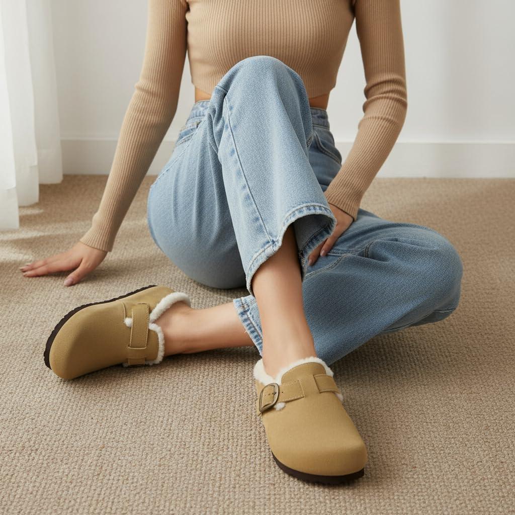 Experience cozy versatility with the CUSHIONAIRE Haven — a thoughtful balance between indoor comfort and everyday style. Designed for women who value both softness and support, these clogs for women are a go-to choice for cold mornings, casual afternoons, and everything in between. Lined with plush faux fur and wrapped in genuine leather, each pair delivers a warm, secure fit you’ll reach for season after season. Unlike ordinary slippers, these womens slip on shoes are built for more than lounging. The slip-on design makes getting out the door effortless, while the cushioned cork footbed and adjustable buckle offer customized comfort. Whether you're running errands or relaxing at home, Haven moves with you — providing stability, ease, and a touch of polish in every step. With their rounded silhouette and molded outsole, they even echo the comfort-first charm of potato shoes, blending that casual aesthetic with refined details and practical materials. These women’s mules offer the convenience of a slipper with the support of a structured shoe, making them a unique hybrid that complements a range of outfits. From jeans to loungewear, Haven adapts to your lifestyle effortlessly. Its indoor-outdoor sole means you can transition between rooms — or routines — without skipping a beat. As womens shoes, they prioritize ease, but never compromise on look or feel. Comfort should be simple. And with the Haven, it is — in every step, every day.