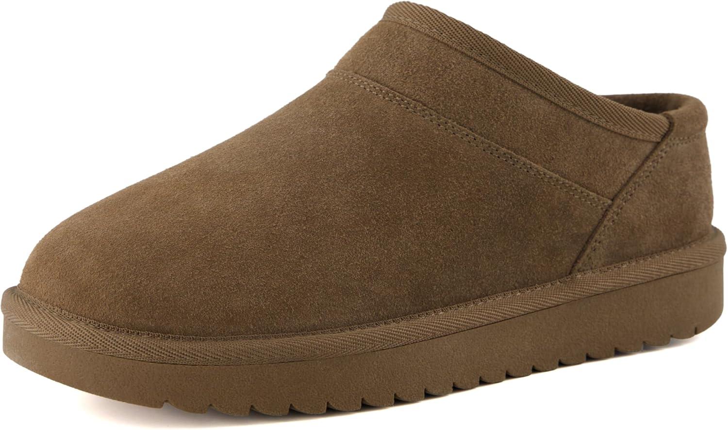 CUSHIONAIRE Hilo-3 Cozy Suede Womens Slippers, Soft Faux Fur Lined Slip On House Shoes for Women with Cushioned Memory Foam(Brown Wood Genuine Suede)
