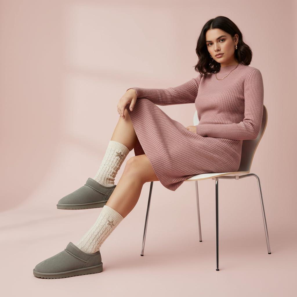 Step into comfort and warmth with the CUSHIONAIRE Hilo-3 women’s slippers, designed for cozy days at home and effortless moments on the move. Made with soft suede and plush faux-fur lining, they deliver a luxurious feel that keeps your feet warm through every season. These versatile slip-ons combine the easy wear of clogs for women with the snug comfort of indoor footwear, creating a perfect balance of style and function. Each step feels soft and supported thanks to the cushioned memory foam design, giving you lasting comfort whether you’re relaxing at home or stepping outside. The durable treaded sole adds traction and stability, making them practical and reliable for quick errands, lounging, or travel. Inspired by the warmth of womens winter boots and the cozy texture of fur boots, the Hilo-3 brings you the best of both worlds—stylish protection and all-day ease. These women slippers feature an effortless slip-on style that fits seamlessly into your daily routine, while the quality materials ensure they hold up beautifully over time. Perfect as house slippers for women who value comfort, warmth, and simple sophistication, the CUSHIONAIRE Hilo-3 offers a timeless design that feels just as good as it looks—keeping every step soft, cozy, and confident.