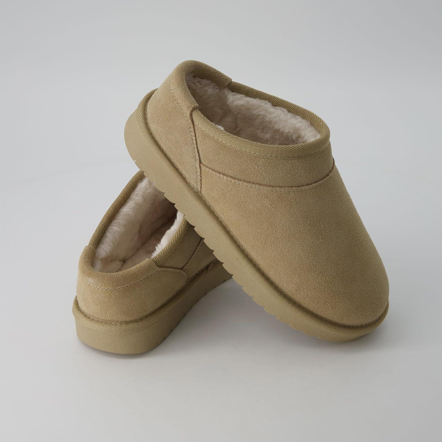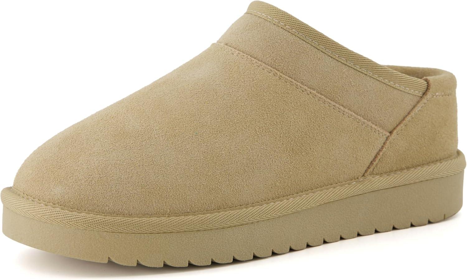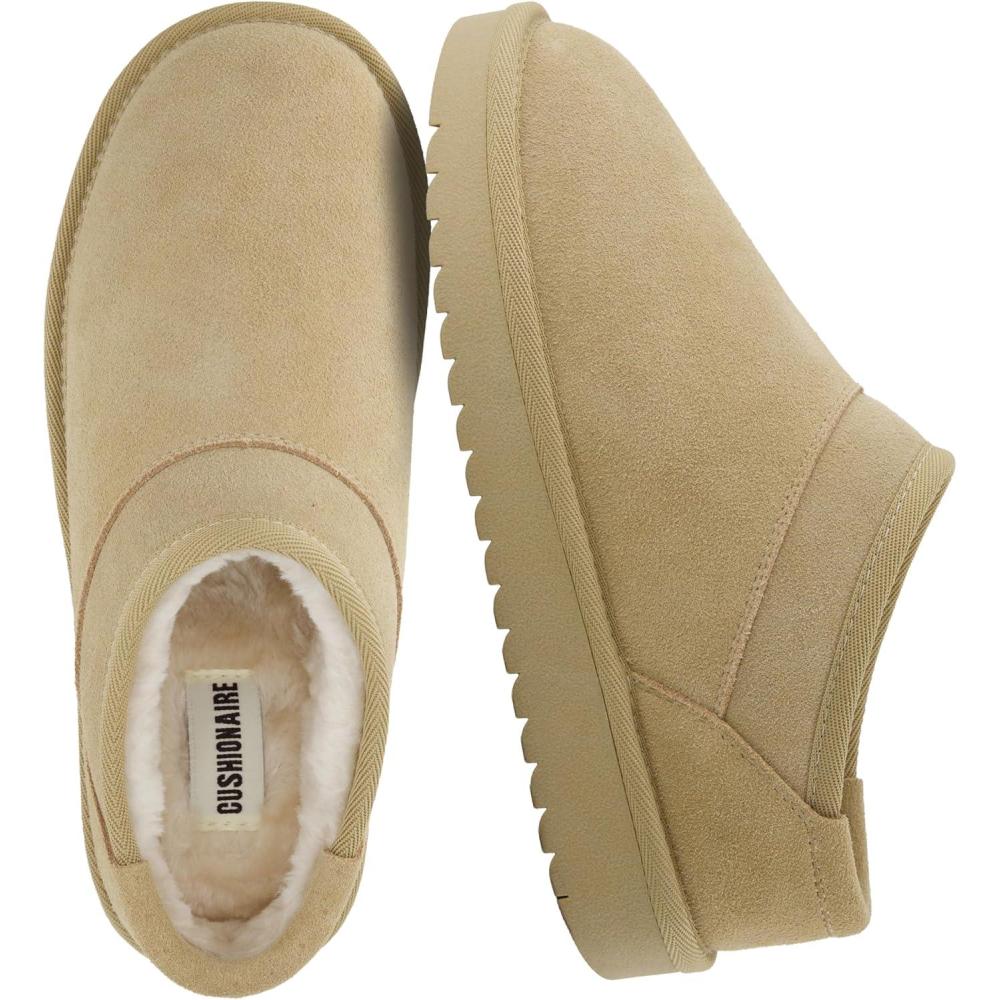 CUSHIONAIRE Hilo-3 Cozy Suede Womens Slippers, Soft Faux Fur Lined Slip On House Shoes for Women with Cushioned Memory Foam(Sand Breeze Genuine Suede)