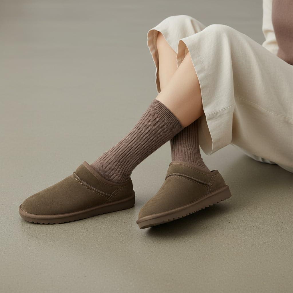 CUSHIONAIRE Hilo-3 Cozy Suede Womens Slippers, Soft Faux Fur Lined Slip On House Shoes for Women with Cushioned Memory Foam(Chocolate 2)
