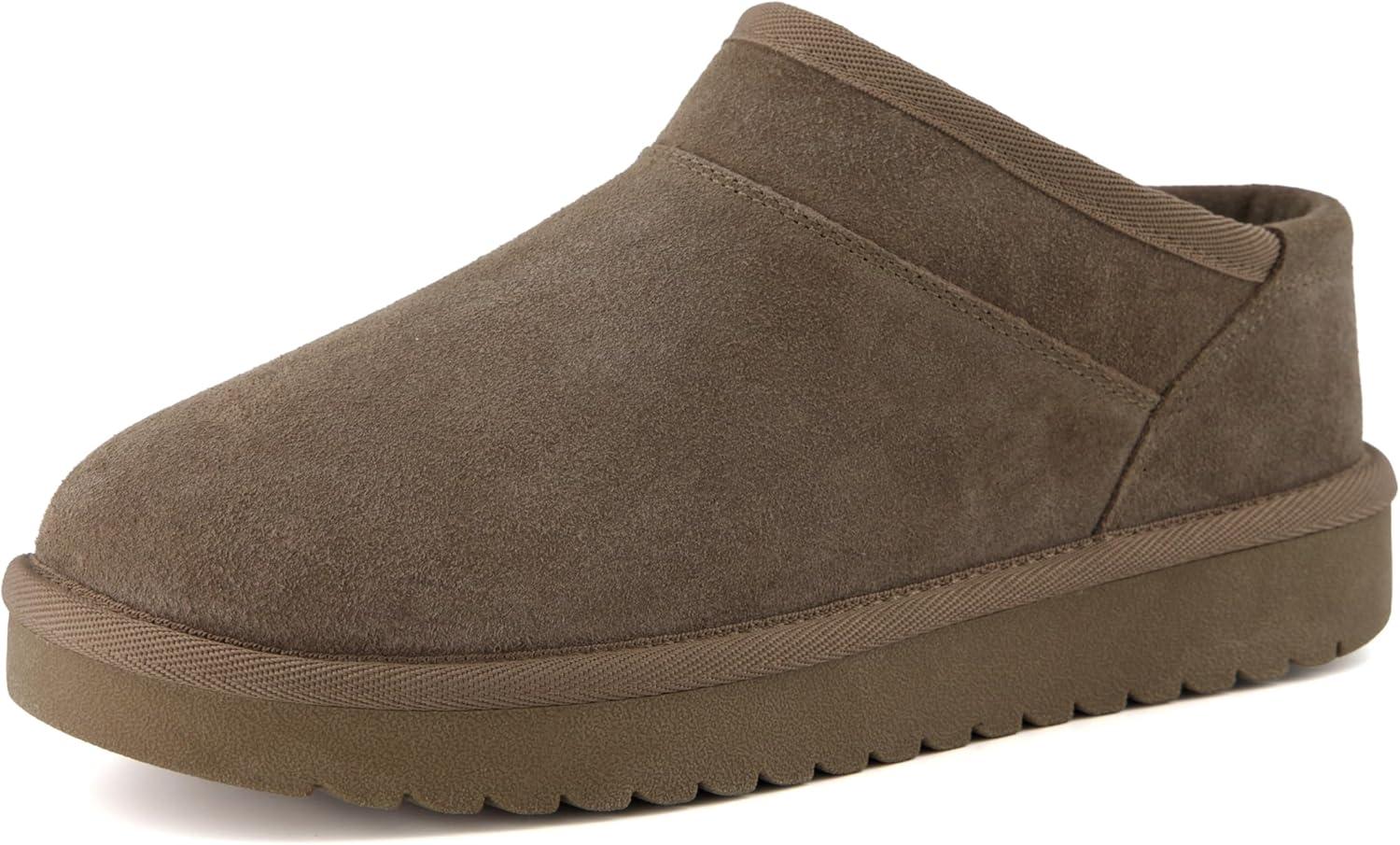 CUSHIONAIRE Hilo-3 Cozy Suede Womens Slippers, Soft Faux Fur Lined Slip On House Shoes for Women with Cushioned Memory Foam(Brown Wood Genuine Suede)