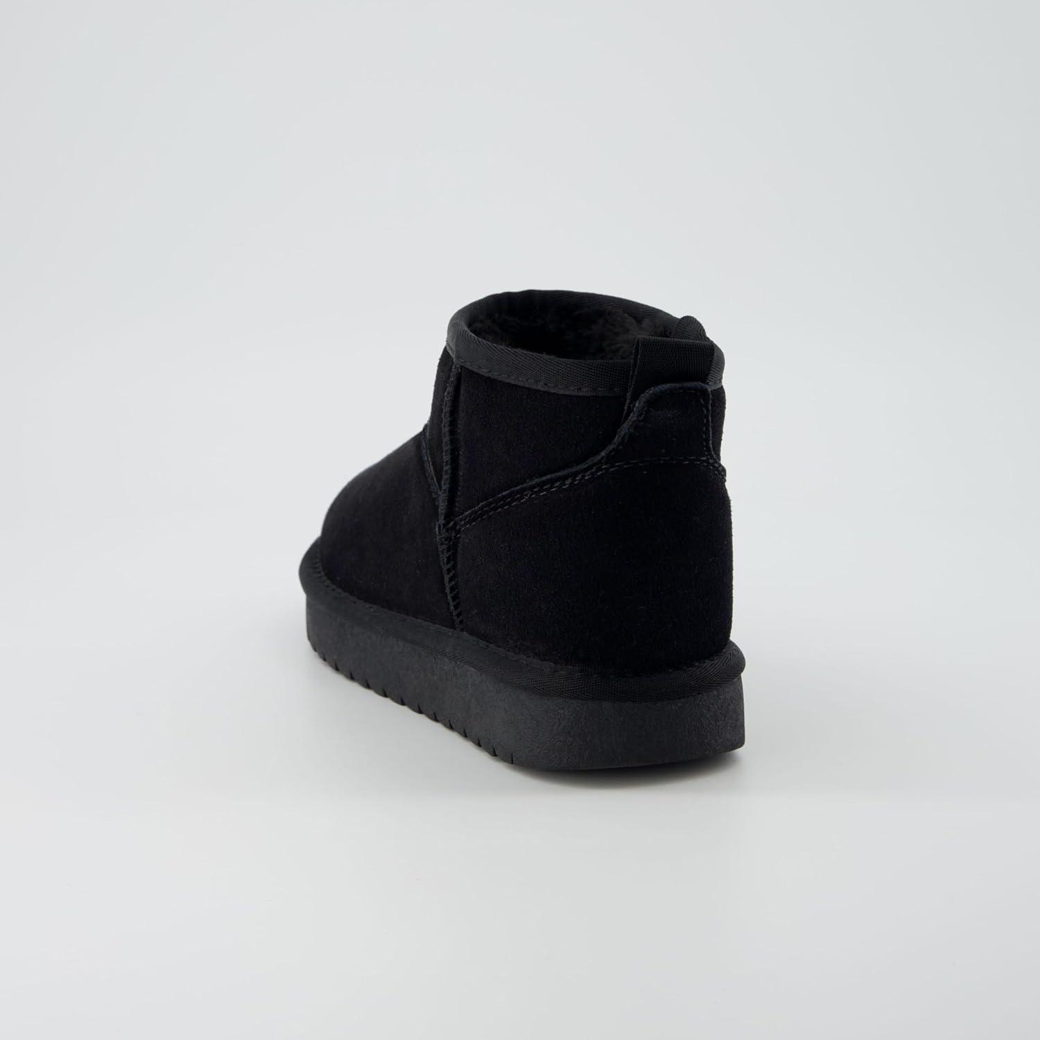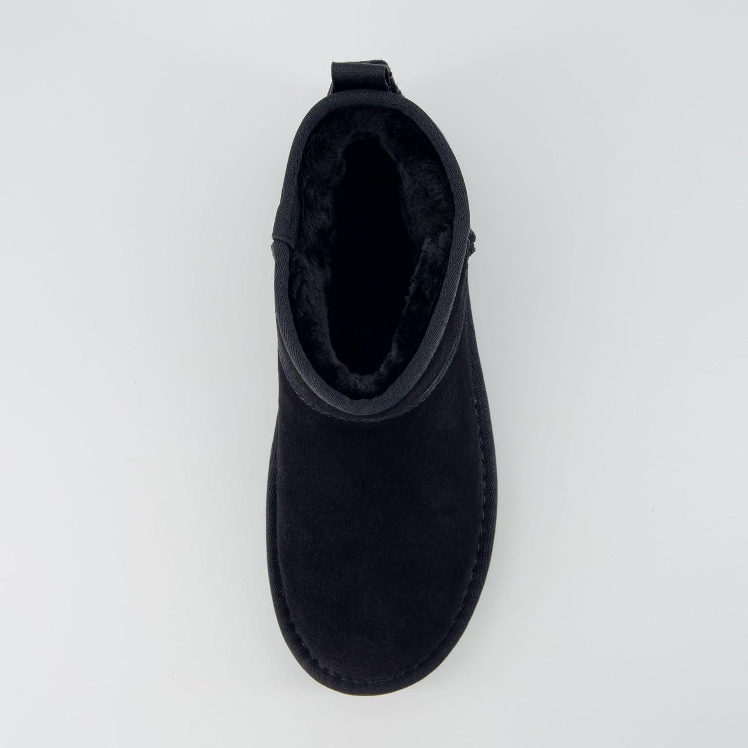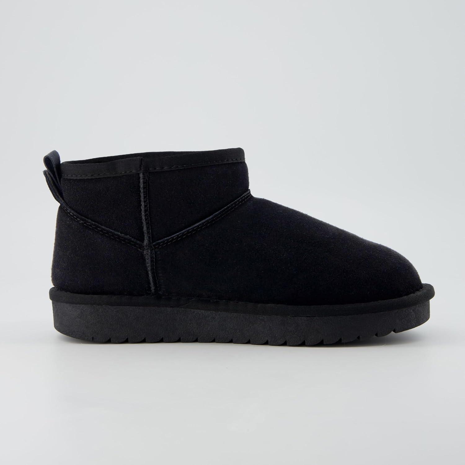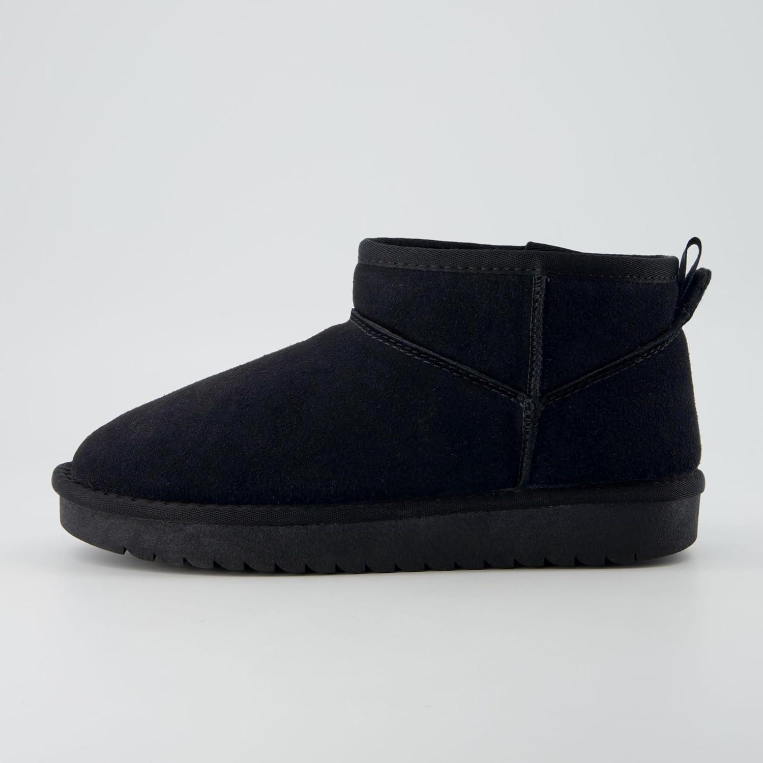 CUSHIONAIRE Hip 2 Genuine Suede Ankle Boots for Women, Cozy Faux Shearling Lining Pull On Winter Womens Boots(Black)