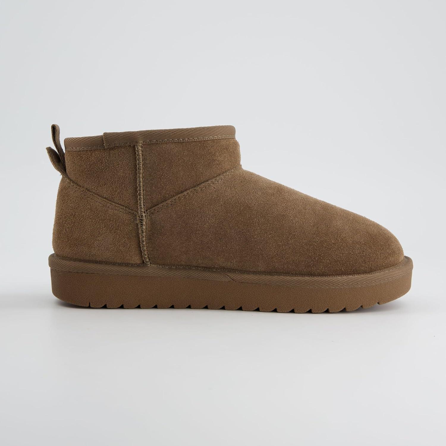CUSHIONAIRE Hip 2 Genuine Suede Ankle Boots for Women, Cozy Faux Shearling Lining Pull On Winter Womens Boots(Brown)