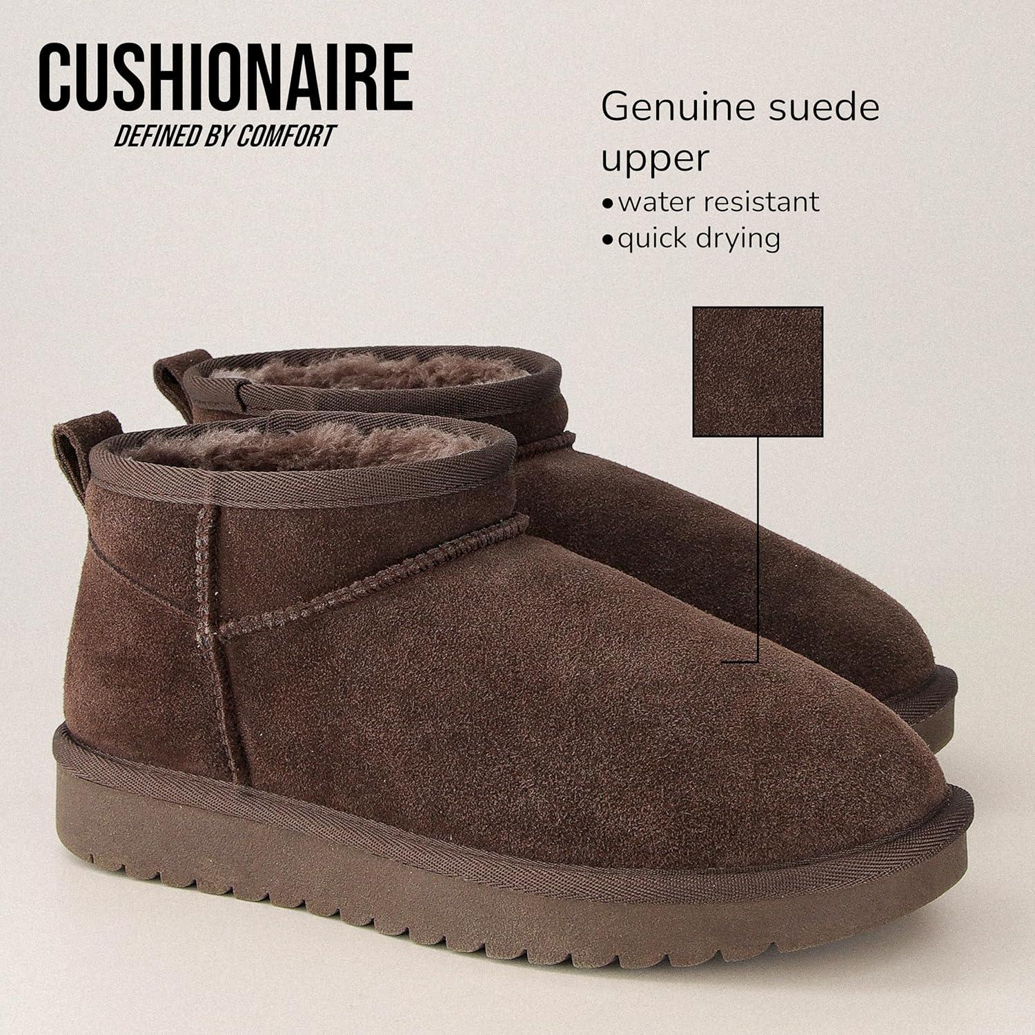 Slip into comfort with the CUSHIONAIRE Hip 2 Suede Ankle Boots. Crafted from genuine suede, these boots are designed with a plush faux shearling lining that wraps your feet in cozy warmth during chilly days. The easy pull-on style makes them convenient to wear, while the supportive sole provides traction and stability whether you’re indoors or outdoors. The ankle-height cut delivers a flattering look that pairs perfectly with jeans, leggings, or your favorite fall clothes for women. The soft suede upper gives a timeless touch, while the cushioned interior ensures comfort you can enjoy all day long. Whether you’re relaxing at home, treating them like slippers for women thanks to their cozy lining, or heading out into colder weather, these boots adapt to your lifestyle with ease. Designed for versatility, they work as stylish everyday wear and as dependable snow boots for women when the temperatures drop. Their durable construction and warm lining make them an essential part of any winter wardrobe. Available in a variety of shades, the CUSHIONAIRE Hip 2 delivers comfort, style, and reliability—proving why they belong among the most-loved options in women's boots today.
