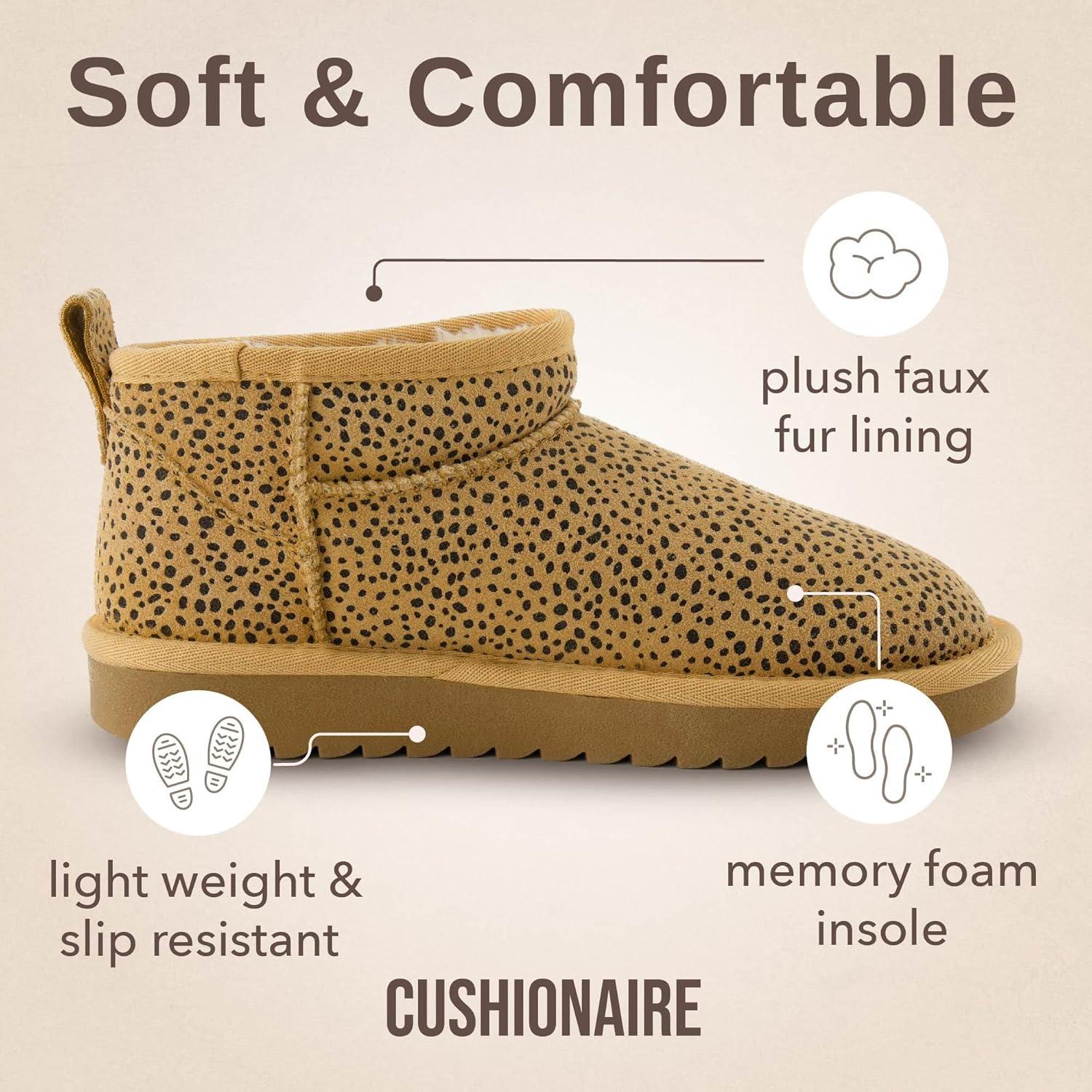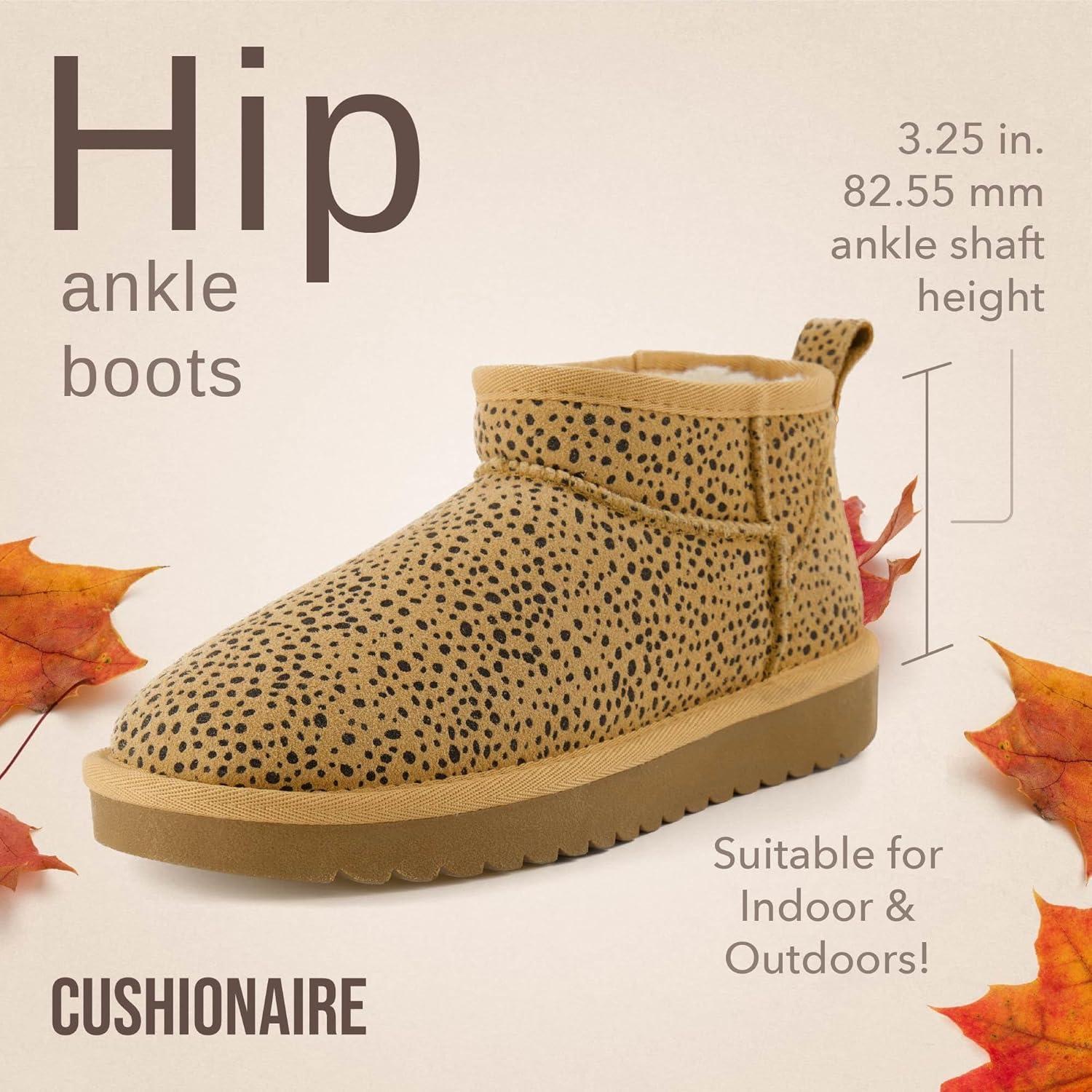 CUSHIONAIRE Hip-3 Genuine Suede Leather Ankle Boots for Women – Pull On Cozy Faux Fur Boots Womens Shoes with Comfortable Memory Foam(Cheetah Genuine Suede)