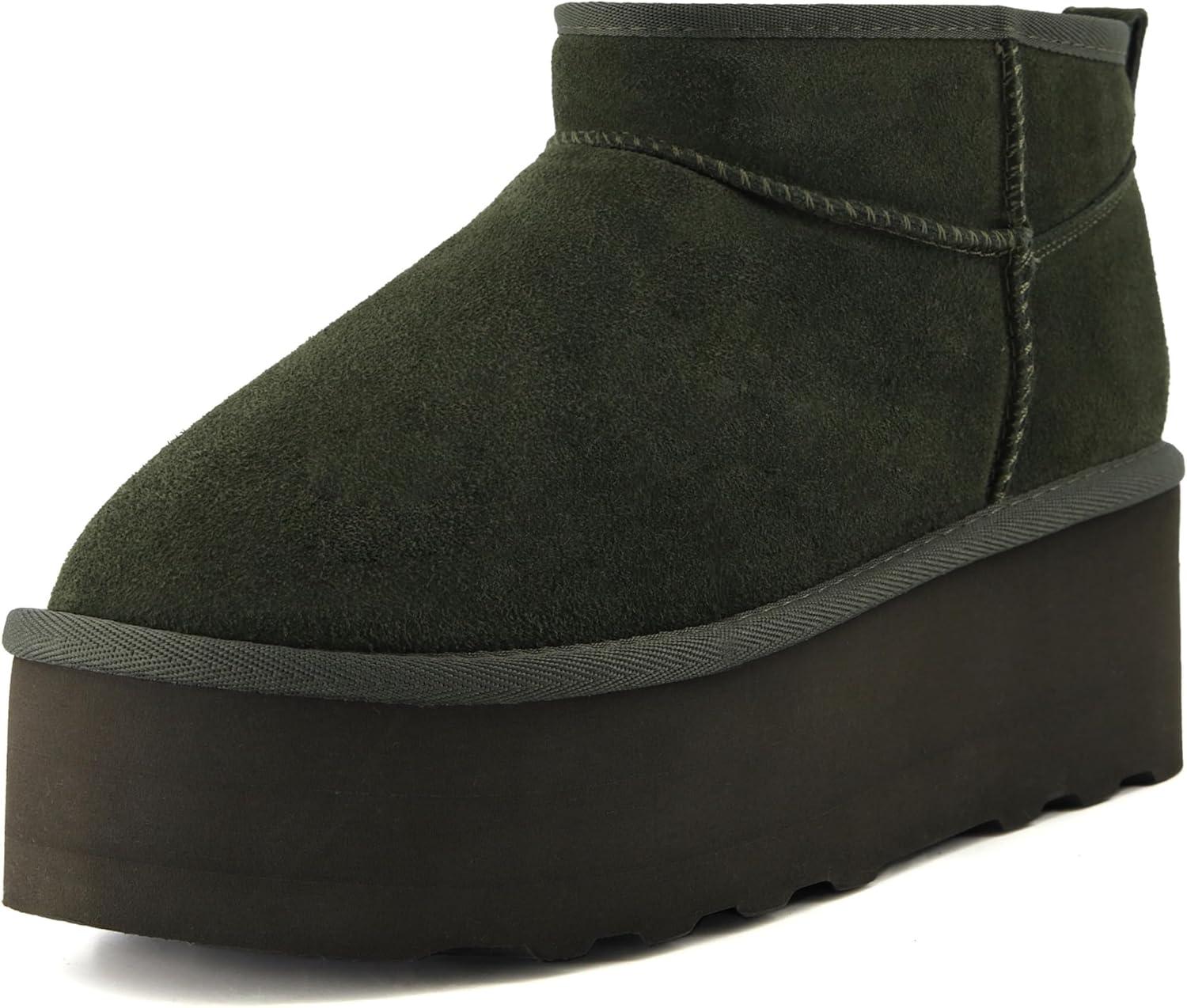 CUSHIONAIRE Hippy Women’s Platform Ankle Boots – Genuine Suede, Faux Fur Lining, Cozy Winter Slip-On Design, Comfortable Footwear with Wide Widths Available(Green)