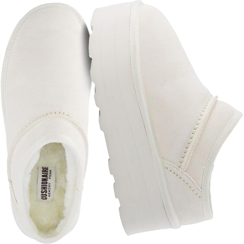 CUSHIONAIRE Huggy-2 Platform Slippers for Women, Cozy Genuine Suede Slip-On Ankle Boots for Indoor Outdoor Wear, Womens Slippers(Off-white)