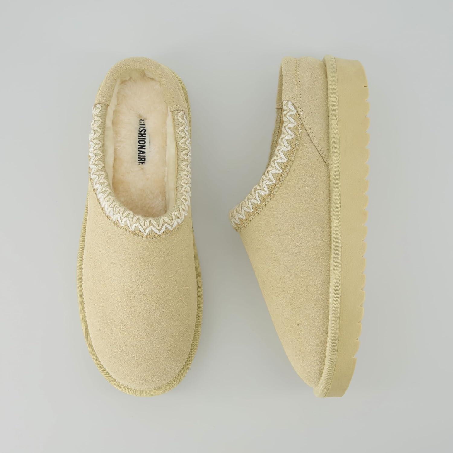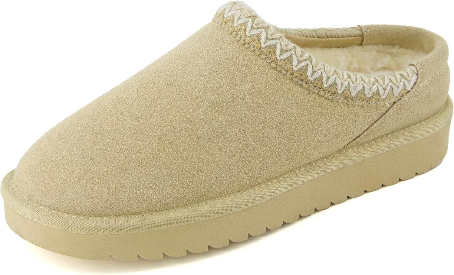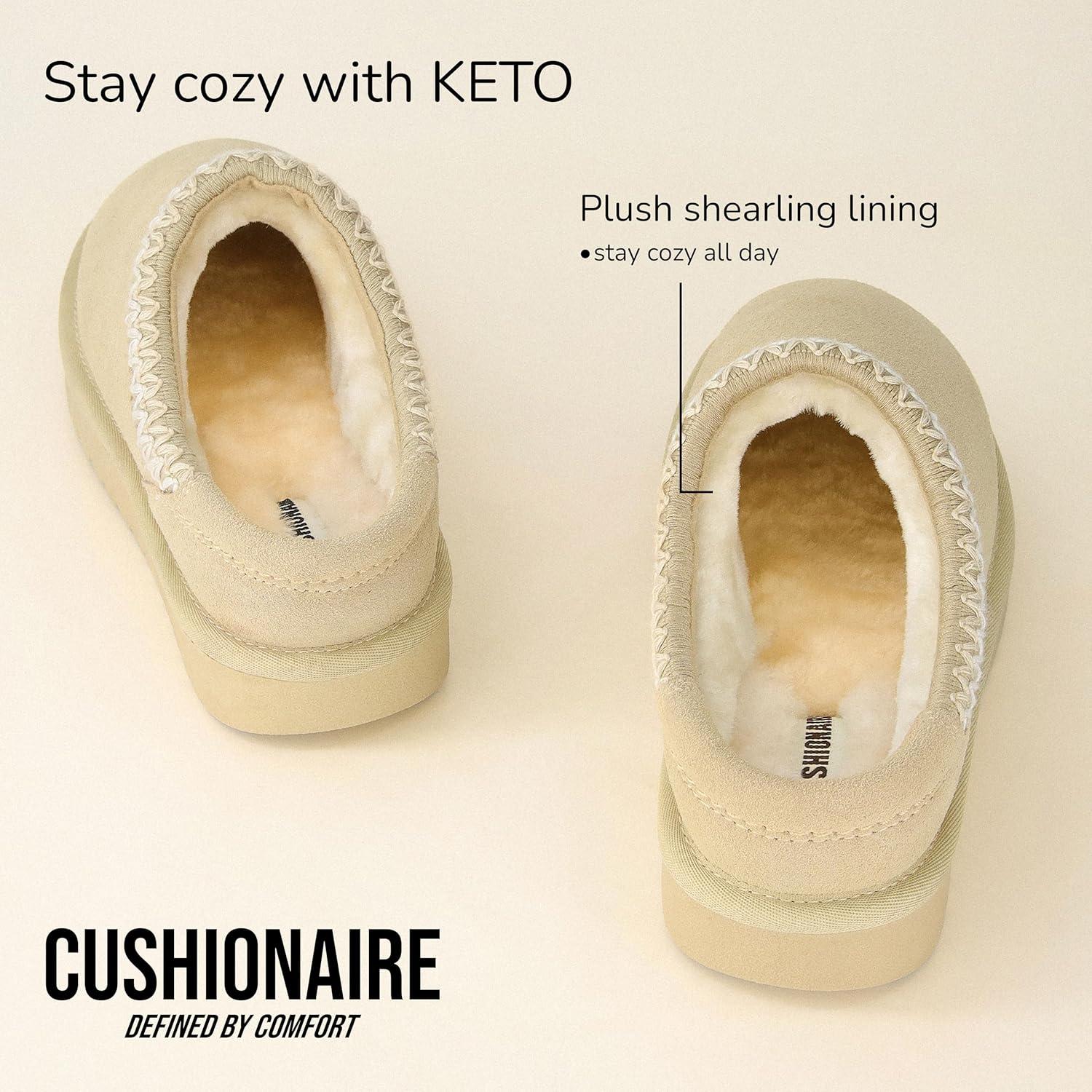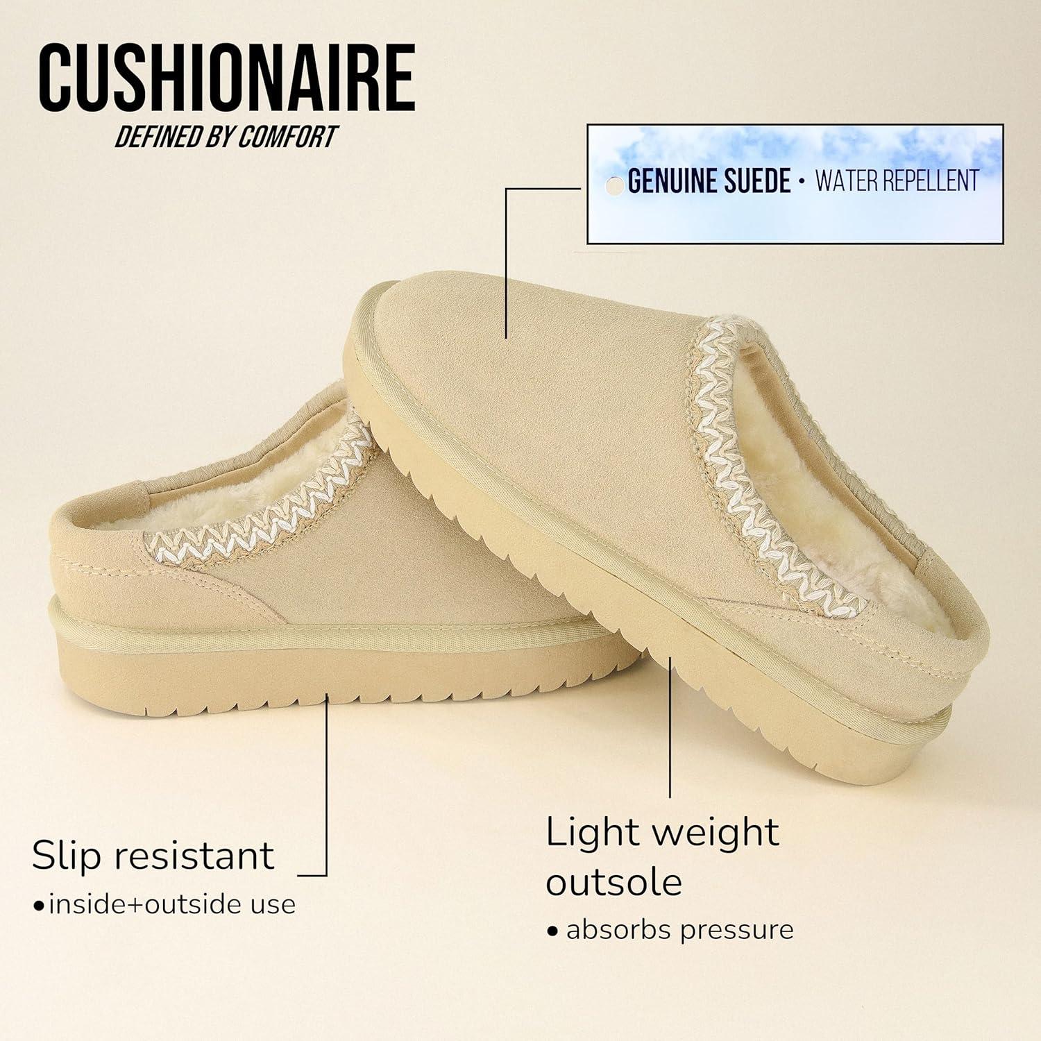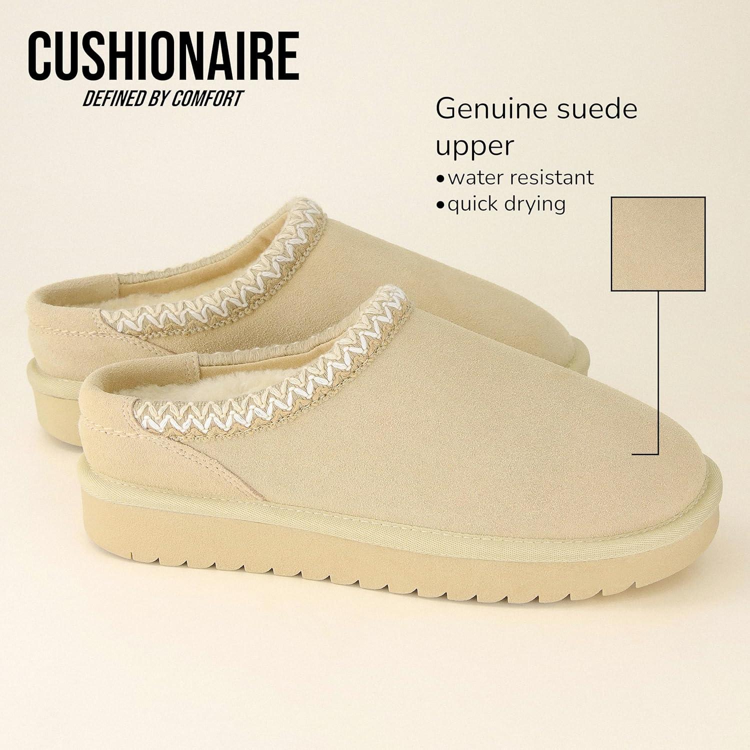 CUSHIONAIRE Keto Womens Slippers Slip-On Suede Mule Slipper – Cozy & Stylish, Memory Foam & Faux Fur Lining, Wide Widths Available(Beige)