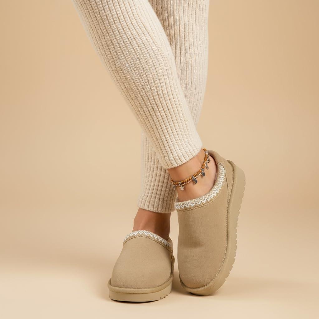 CUSHIONAIRE Keto Womens Slippers Slip-On Suede Mule Slipper – Cozy & Stylish, Memory Foam & Faux Fur Lining, Wide Widths Available(Biscuit)