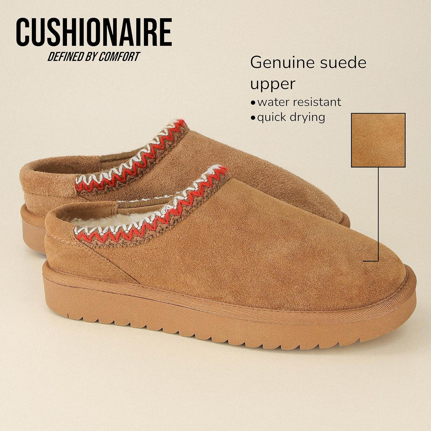 CUSHIONAIRE Keto Womens Slippers Slip-On Suede Mule Slipper – Cozy & Stylish, Memory Foam & Faux Fur Lining, Wide Widths Available(Chestnut)