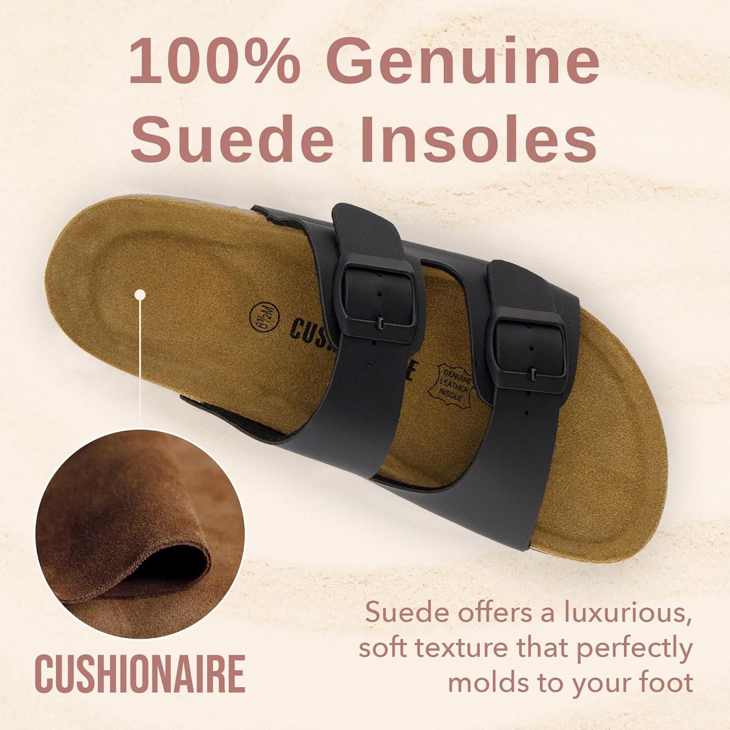 CUSHIONAIRE Lane Cork Footbed Sandals for Women – Comfortable Double Buckle Slip-On with Genuine Suede Footbed & Arch Support Slides for Women Footwear(Black)