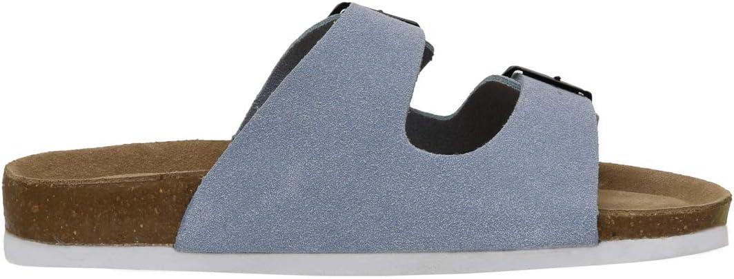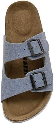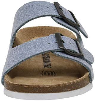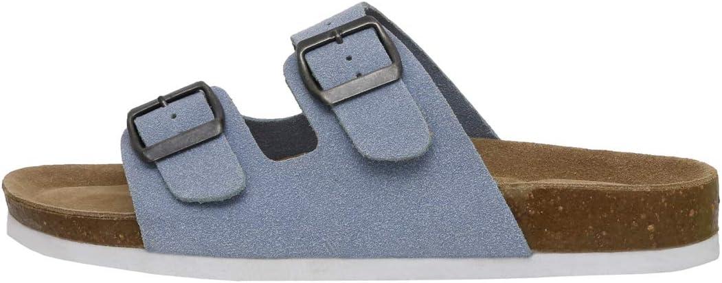 CUSHIONAIRE Lane Cork Footbed Sandals for Women – Comfortable Double Buckle Slip-On with Genuine Suede Footbed & Arch Support Slides for Women Footwear(Lt. Blue Vegan Suede)