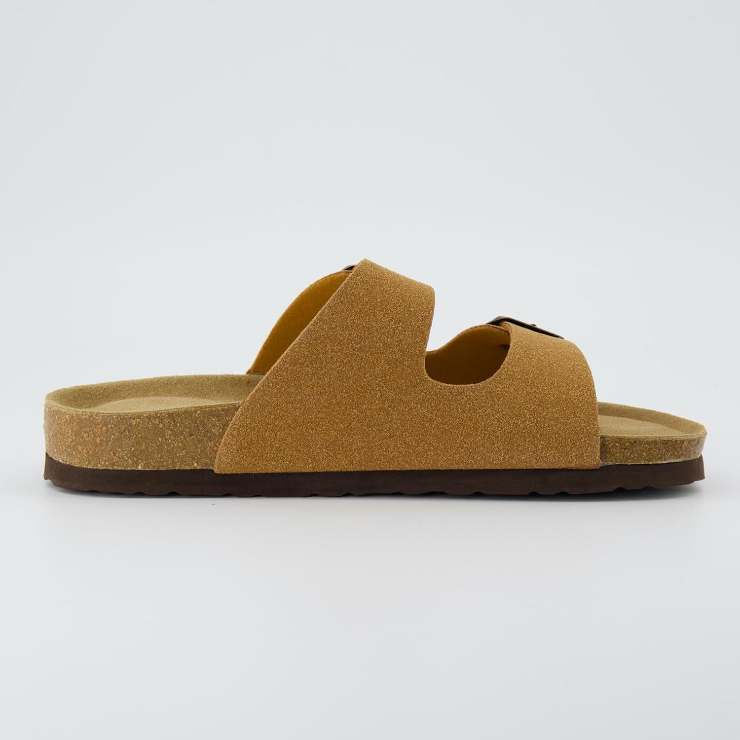 imageCUSHIONAIRE Lane Cork Footbed Sandals for Women  Comfortable Double Buckle SlipOn with Genuine Suede Footbed ampamp Arch Support Slides for Women FootwearTan Vegan Suede