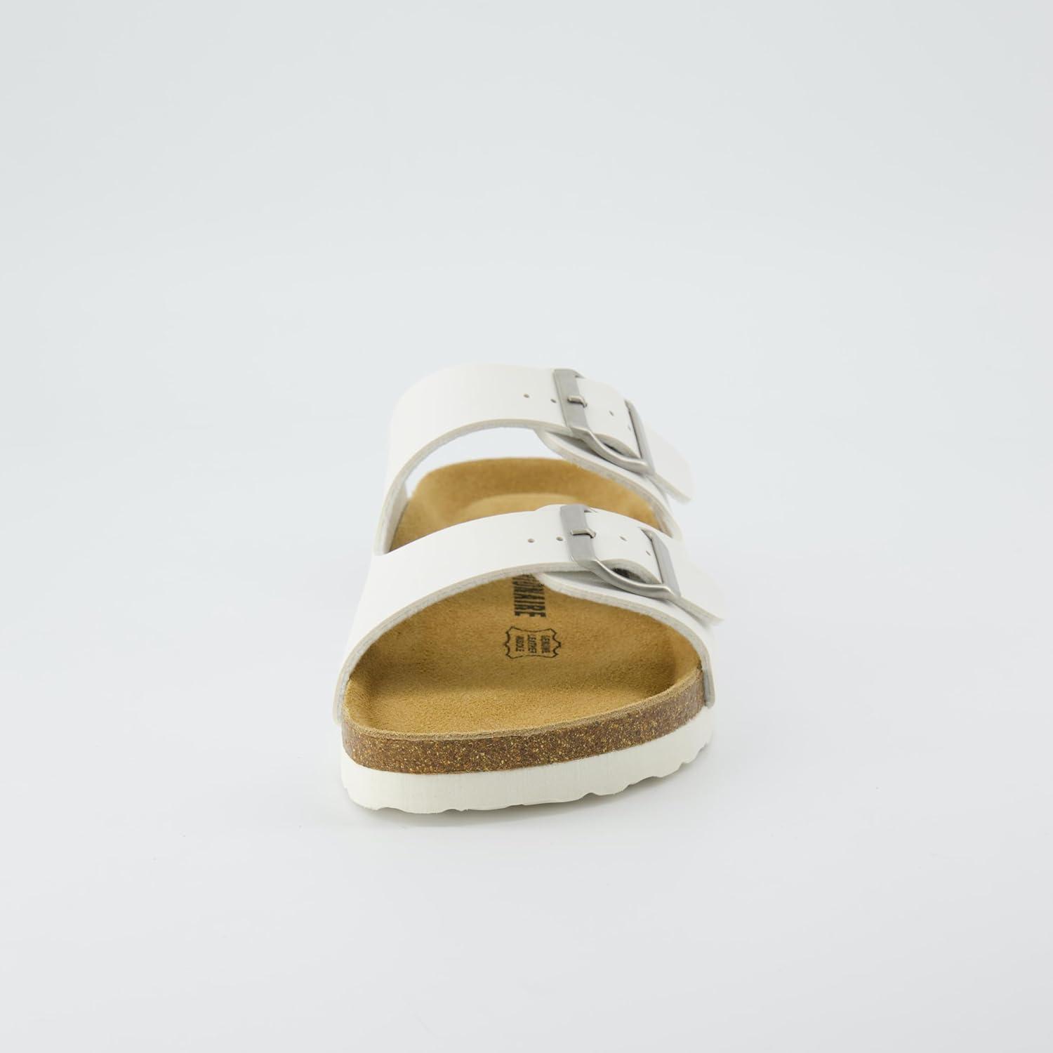 imageCUSHIONAIRE Lane Cork Footbed Sandals for Women  Comfortable Double Buckle SlipOn with Genuine Suede Footbed ampamp Arch Support Slides for Women FootwearWhite