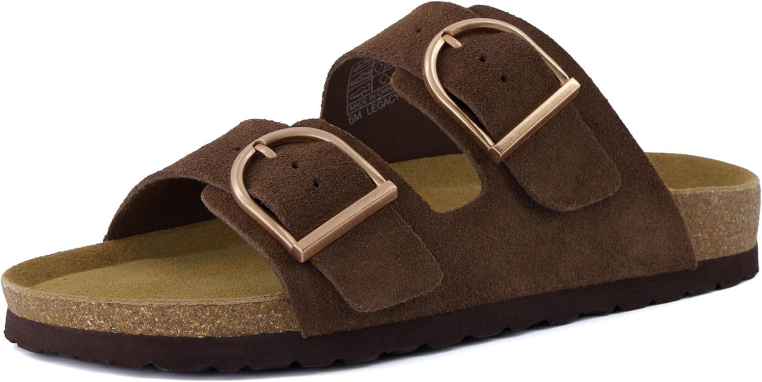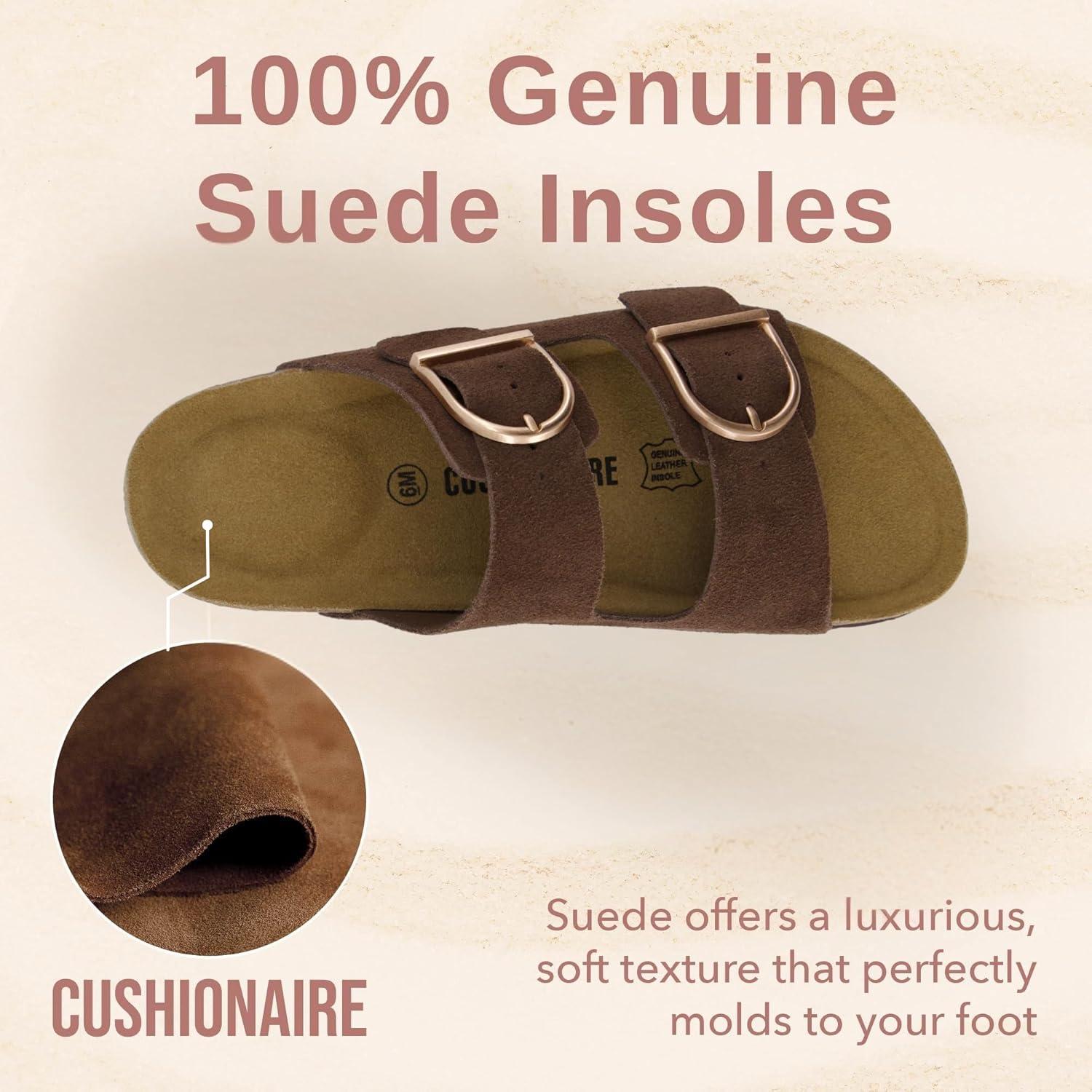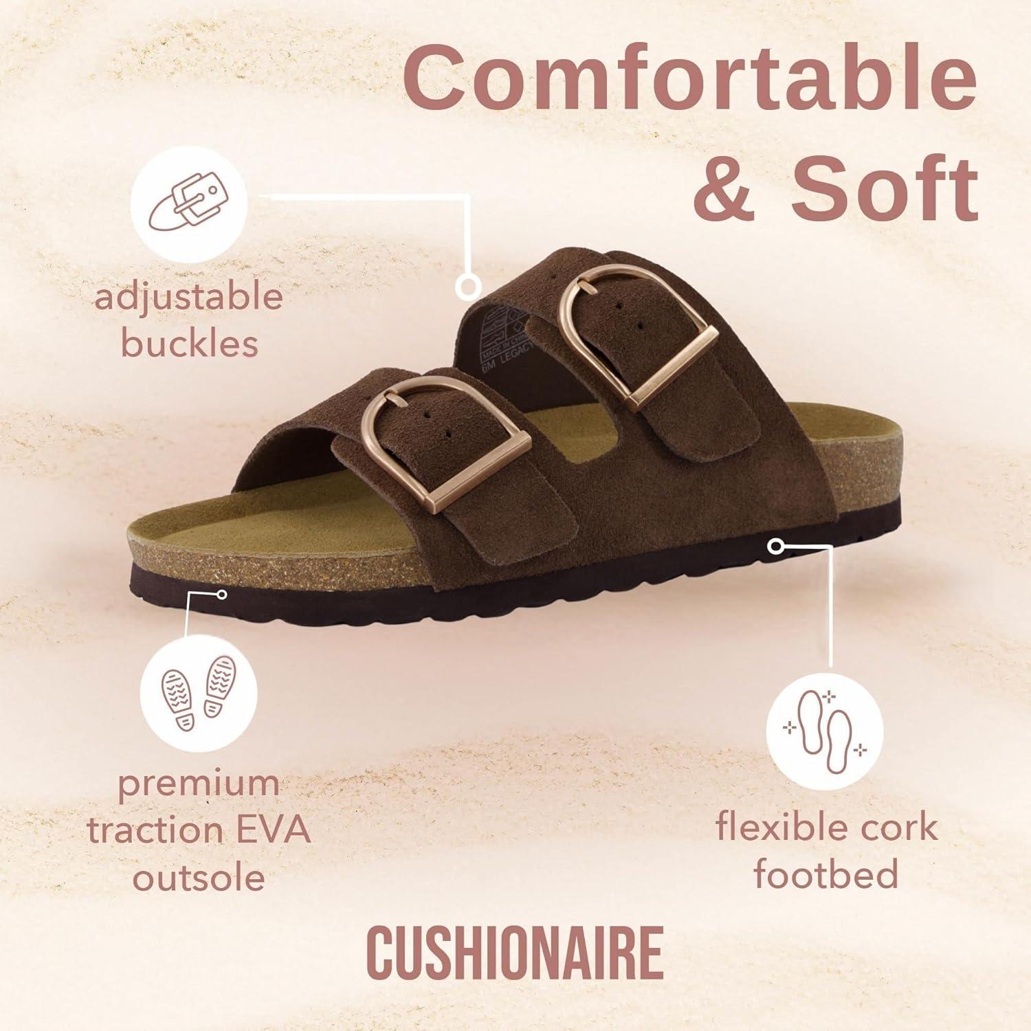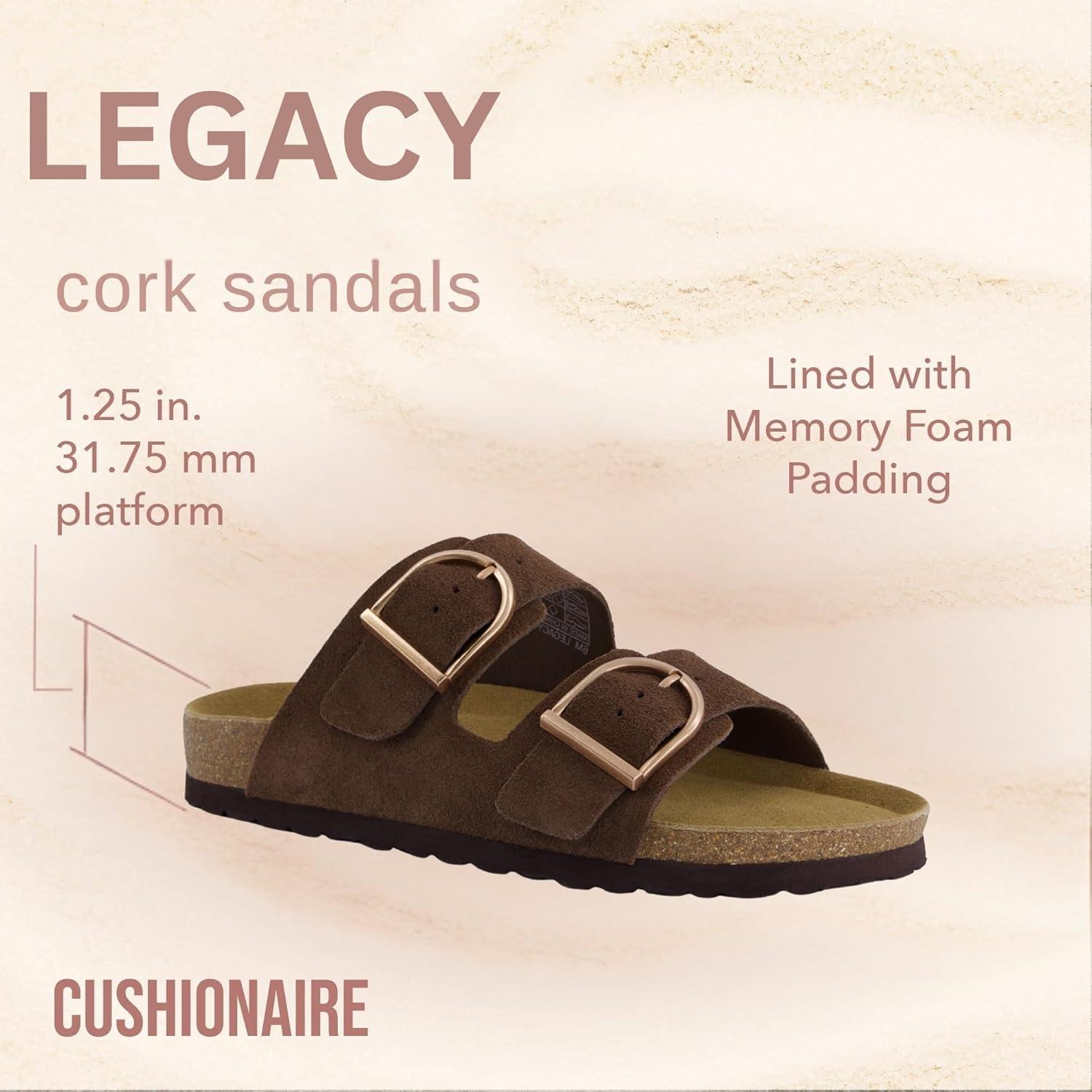 Step into natural comfort and timeless design with the CUSHIONAIRE Legacy Cork Footbed Sandals for Women. Crafted with a genuine leather upper and sleek adjustable buckle straps, this sandal delivers effortless wearability and style. The molded cork footbed offers anatomical support, enhanced by a layer of memory foam for added cushioning. With a grippy outsole and premium materials, Legacy is perfect for everything from weekend errands to beach strolls—your go-to sandal for comfort that lasts.