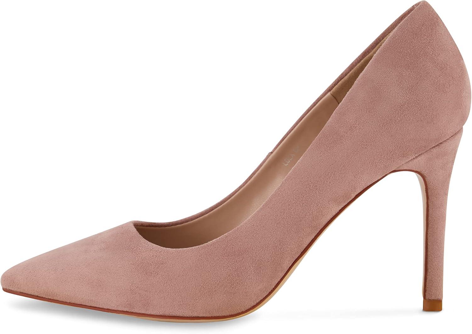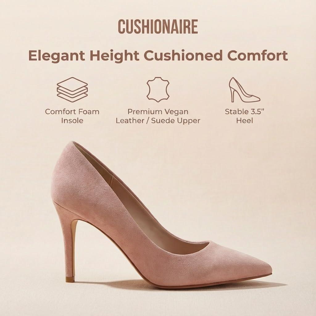 CUSHIONAIRE Lola Dress Pump Heels for Women, Classic Pointed Toe High Heels with Soft Memory Foam and Durable Outsole(Blush Suede)