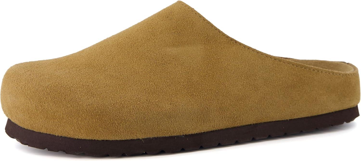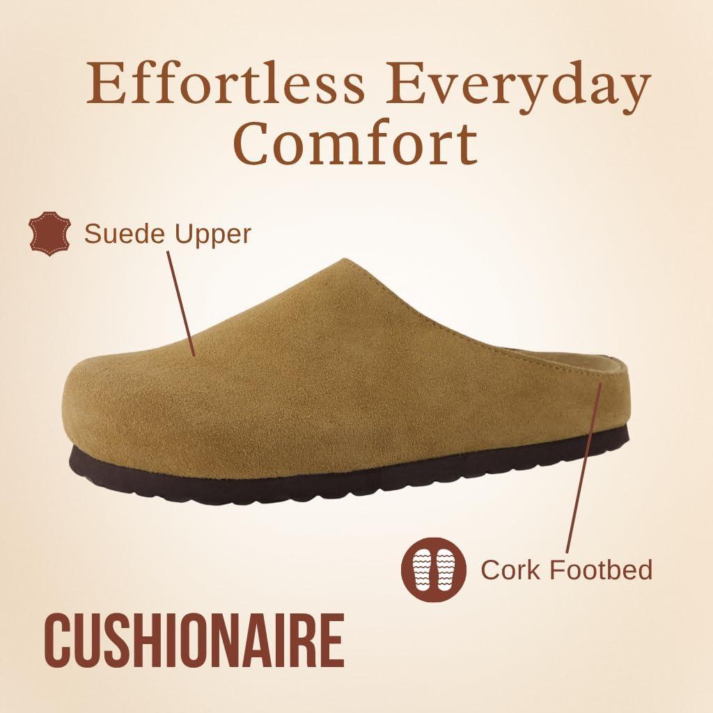 CUSHIONAIRE Lute Genuine Suede Leather Clogs for Women Indoor and Outdoor – Comfortable Slip On Womens Clogs with Cushioned Footbed(Chestnut)