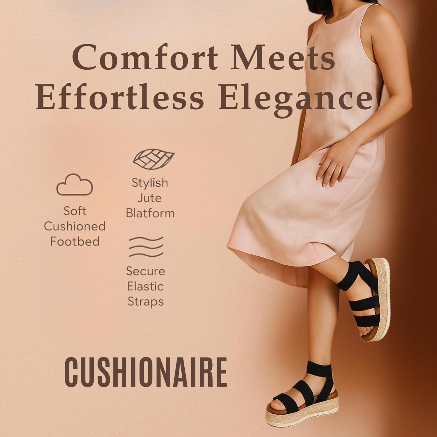 CUSHIONAIRE Mandy Wedge Sandals for Women – Strappy Platform Sandals with Arch Support, Cute Summer Espadrille-Style Platform Dressy Slip-On(Black)