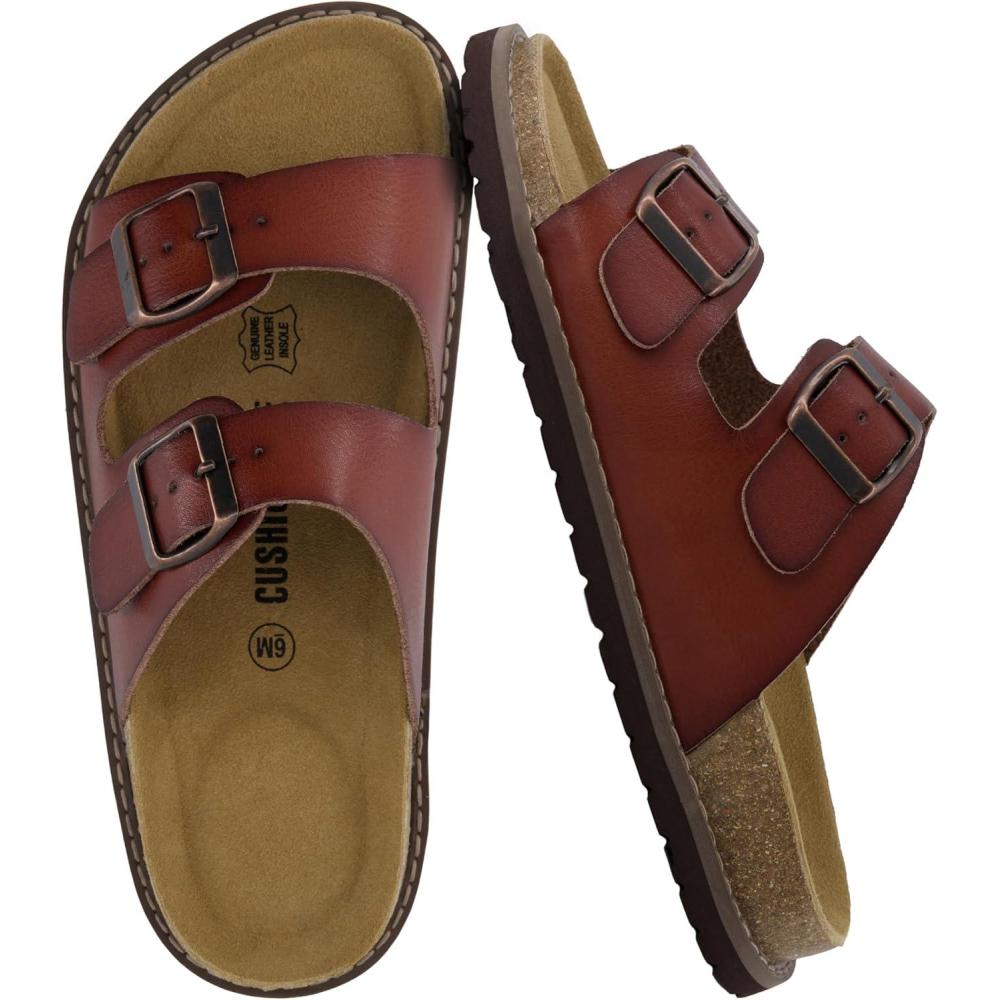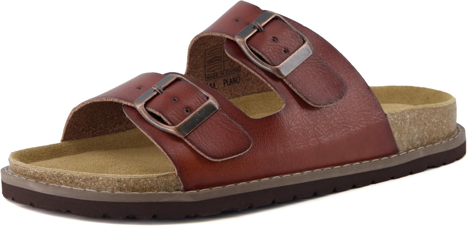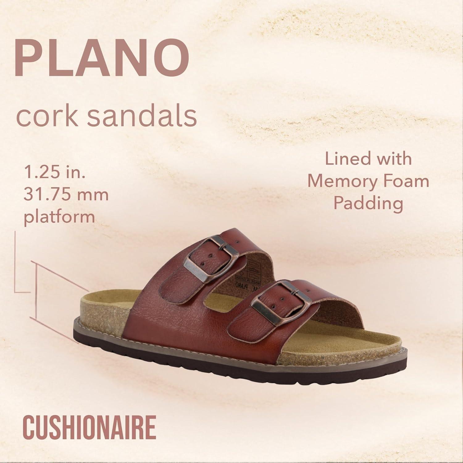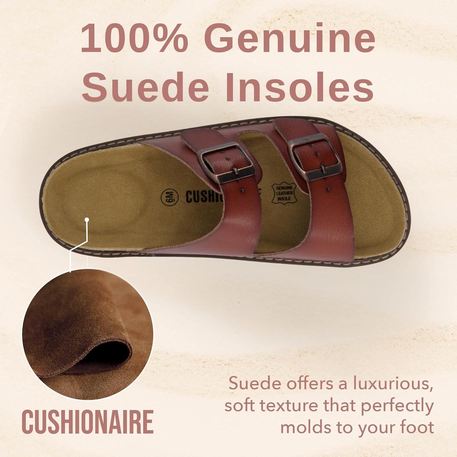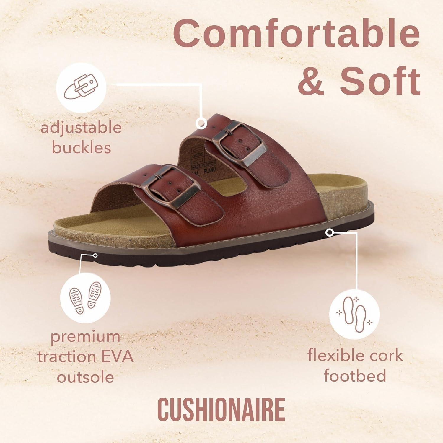 CUSHIONAIRE Plano Slip-On Sandals for Women with Arch Support, Adjustable Buckle Straps, and Stitched Outsole – Casual Flat Summer Womens Sandals(Whiskey Nappa)