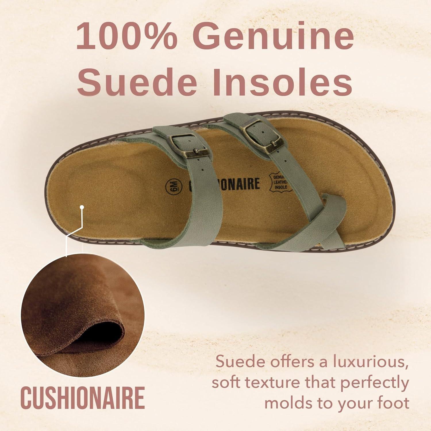 imageCUSHIONAIRE Pluto Cork Footbed Summer Sandals for Women Comfortable Slides with Adjustable Buckles Toe Loop ampamp Stitched Design  Stylish Slip On Women FootwearOlive