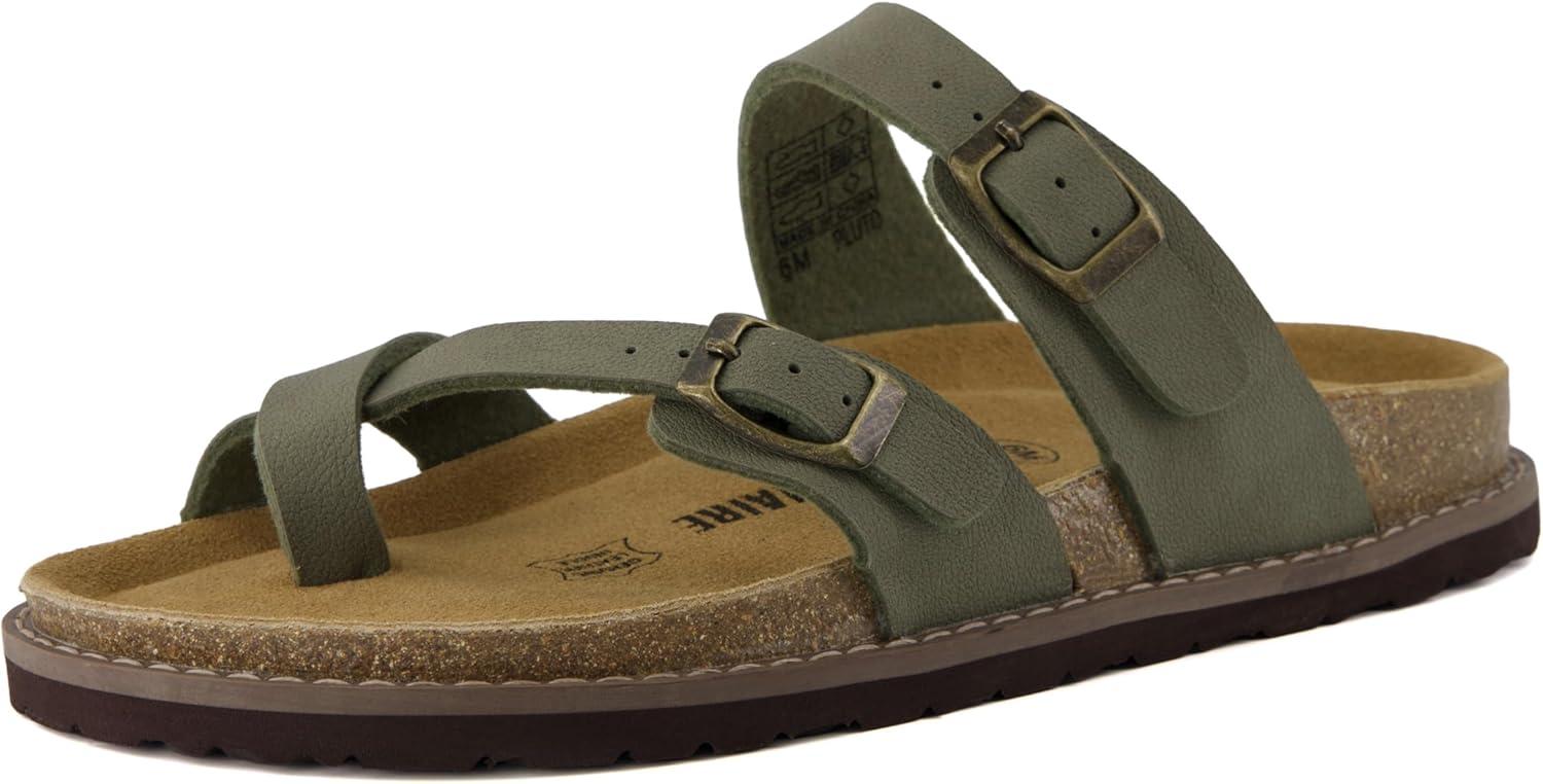 CUSHIONAIRE Pluto Cork Footbed Summer Sandals for Women Comfortable Slides with Adjustable Buckles, Toe Loop & Stitched Design – Stylish Slip On Women Footwear(Olive)