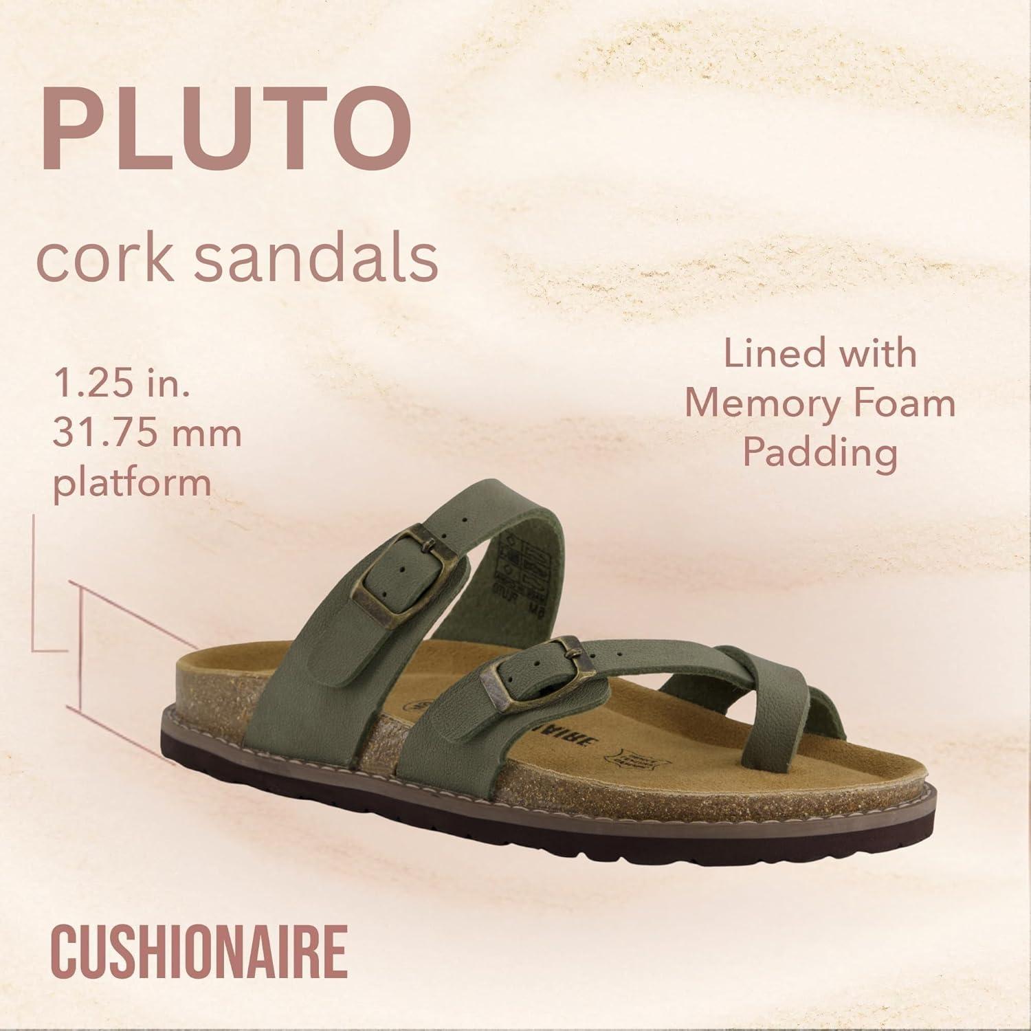 From lakeside mornings to beach bonfires, coffee runs to music festivals, the CUSHIONAIRE Pluto sandals are your go-to for every summer plan. Whether you're kicking back on the dock, dancing at a festival, or strolling to your favorite café, these versatile sandals deliver a perfect blend of comfort and warm-weather style. The contoured cork footbed hugs your natural arch for that walk-all-day feel—ideal for comfortable sandals for women on the go. It adapts to your foot over time, offering lasting support without the break-in period. With lightweight construction, adjustable buckle straps, and a secure toe loop, these summer sandals keep up wherever you take them—from lakeside trails to sandy boardwalks. Breathable, flexible, and easy to slip on, they’re built for all-day adventures. Made with high-quality materials, these vegan leather sandals for women offer the look of leather without compromise. They pair effortlessly with everything from linen shorts to sundresses, making summer outfit planning easy. Whether you’re exploring the beach, grabbing a morning latte, or dancing under the stars, the Pluto fits right in. This is women footwear made to move with your summer rhythm—comfortable, casual, and endlessly versatile. It’s no wonder these are a favorite among fans of cushionaire sandals women turn to year after year. With timeless lines, thoughtfully engineered comfort, and a spirit made for summer, the Pluto isn’t just another sandal—it’s a statement that says you’re ready for wherever the day (or night) takes you.
