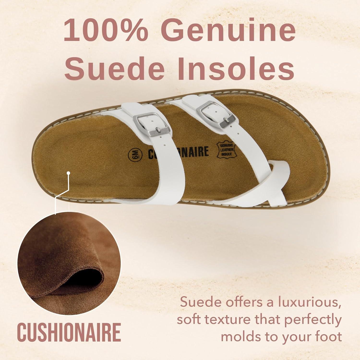 imageCUSHIONAIRE Pluto Cork Footbed Summer Sandals for Women Comfortable Slides with Adjustable Buckles Toe Loop ampamp Stitched Design  Stylish Slip On Women FootwearWhite